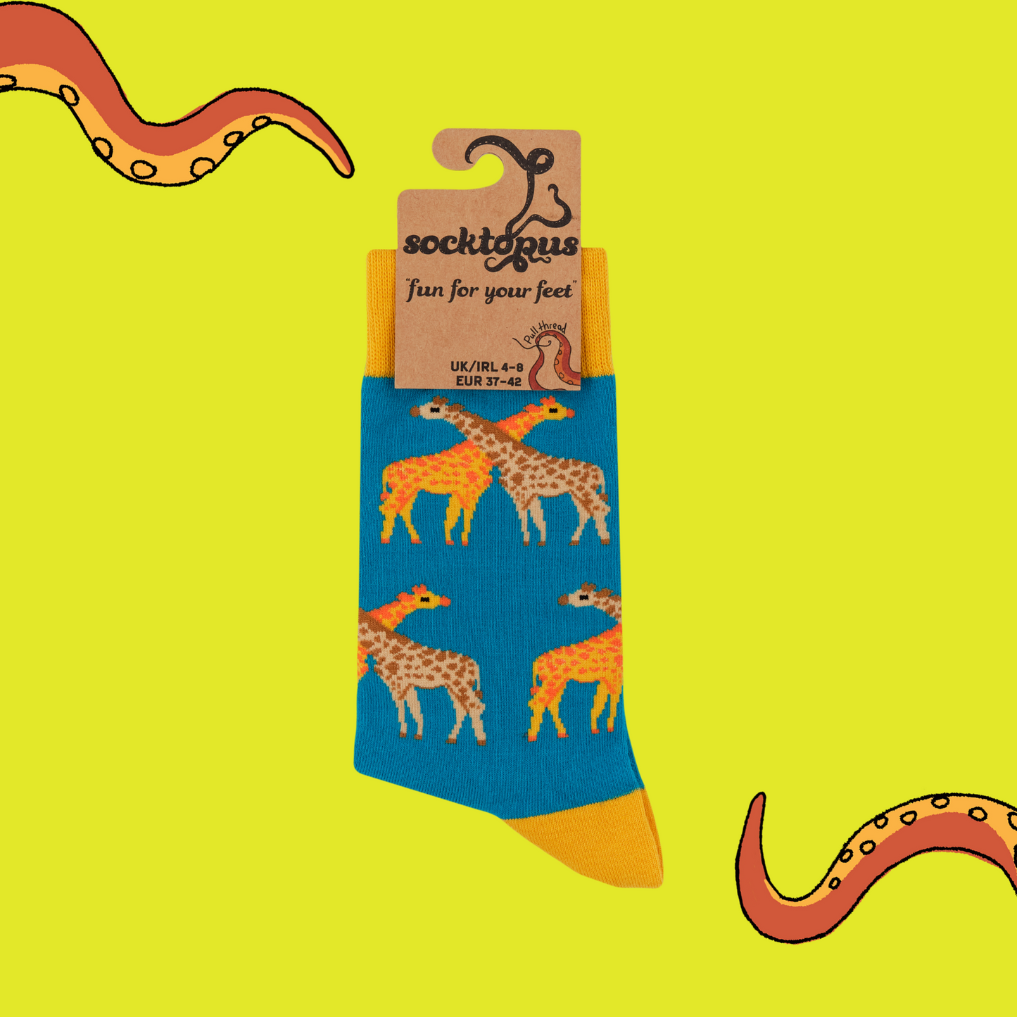 These unique socks feature a playful giraffe pattern that will add a touch of whimsy to any outfit.