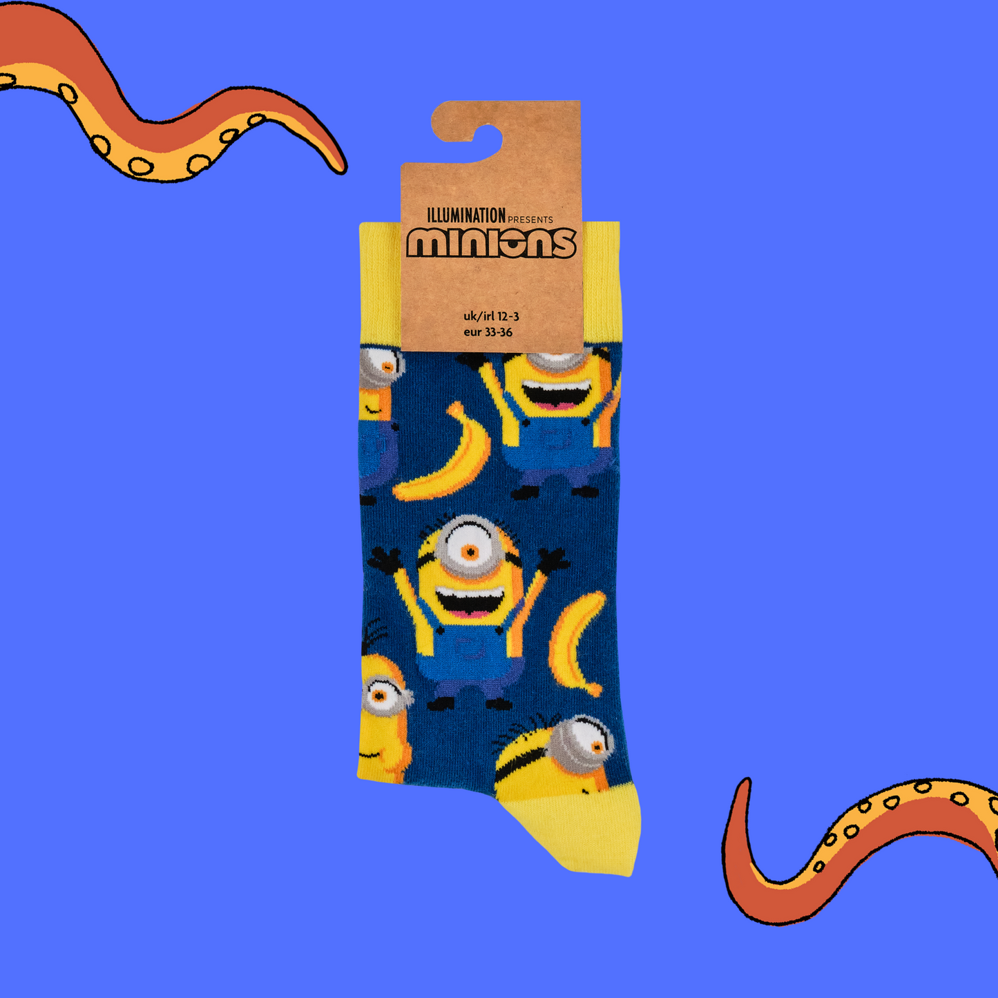 This pair of officially licensed Minions Socks will add just the right amount of anarchic #FUNFORYOURFEET. Featuring your favourite yellow idiots and, of course, bananas, all you will need to do to be transported to the world of Stewart and friends is put them on.