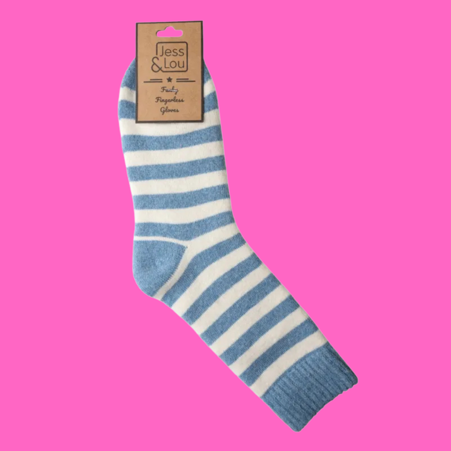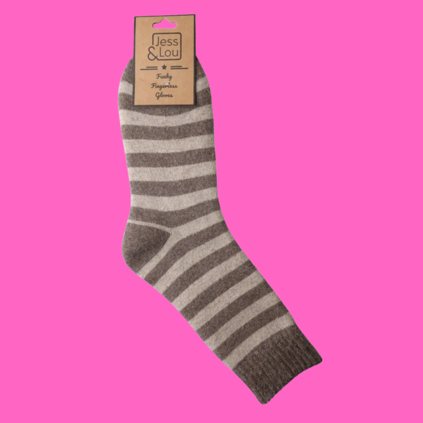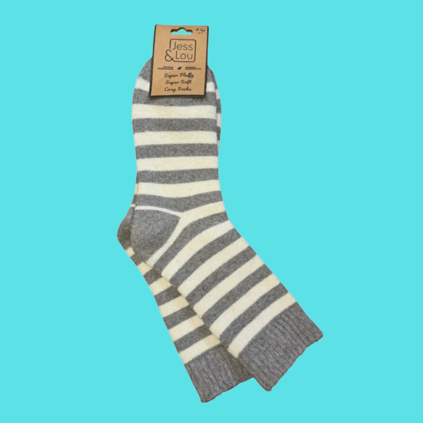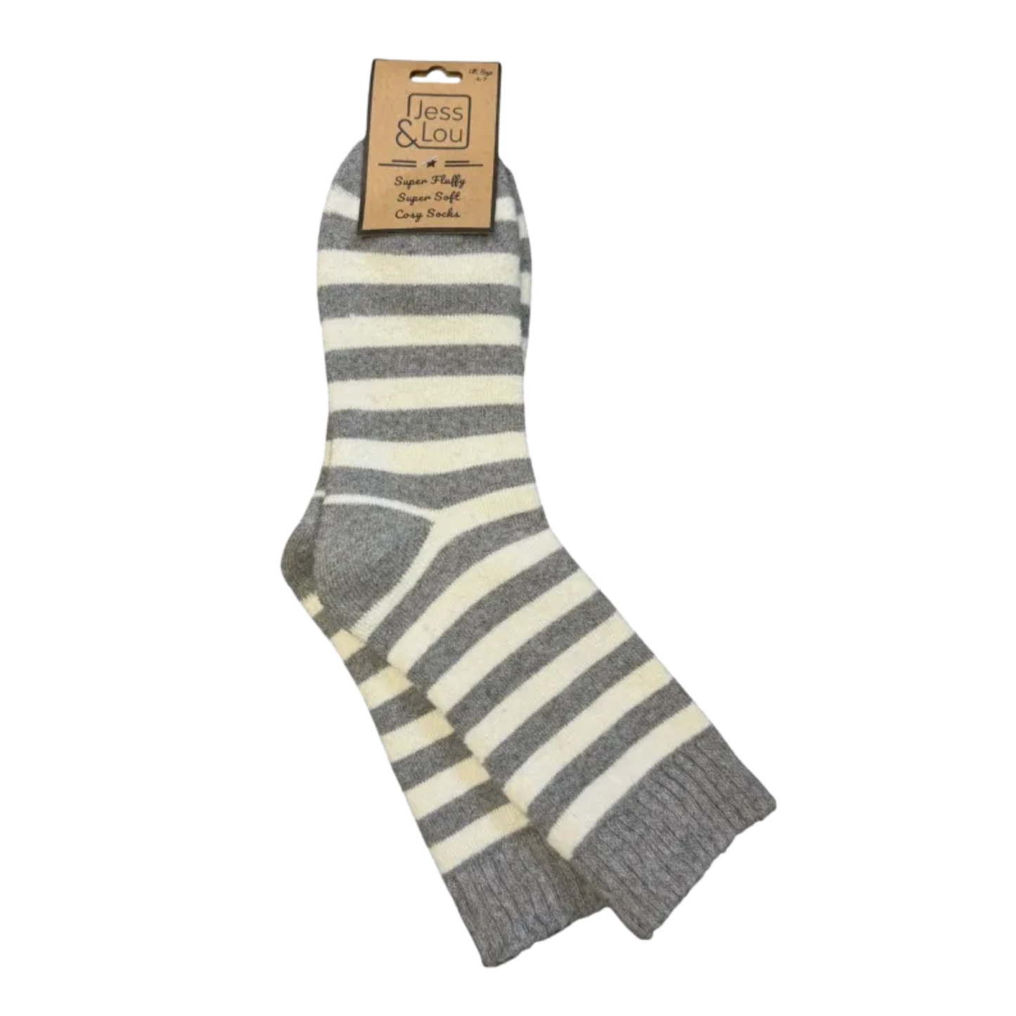 The bold striped design brings a touch of character without trying too hard, making them just as good for quiet nights in as they are for layering under boots on a cold morning.
