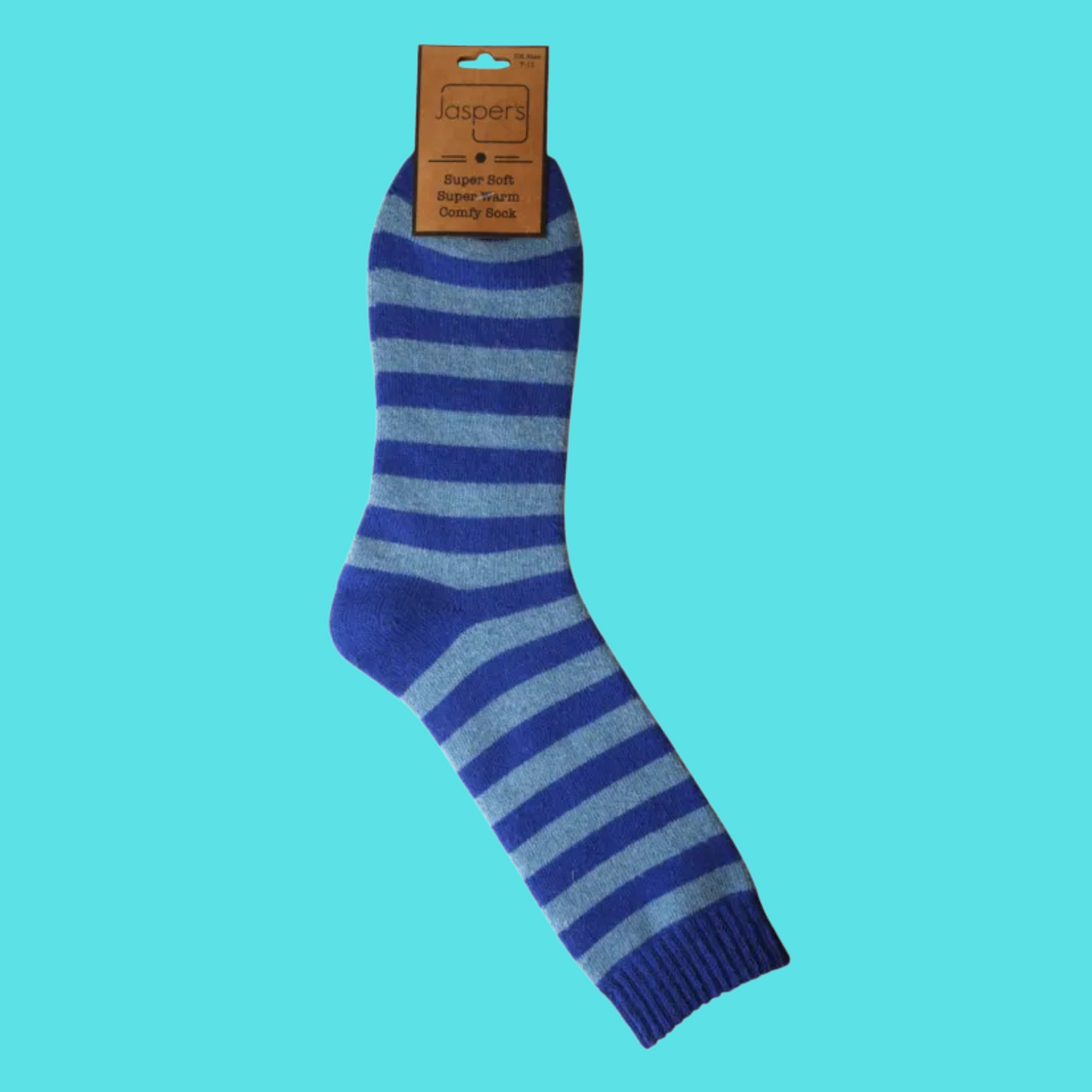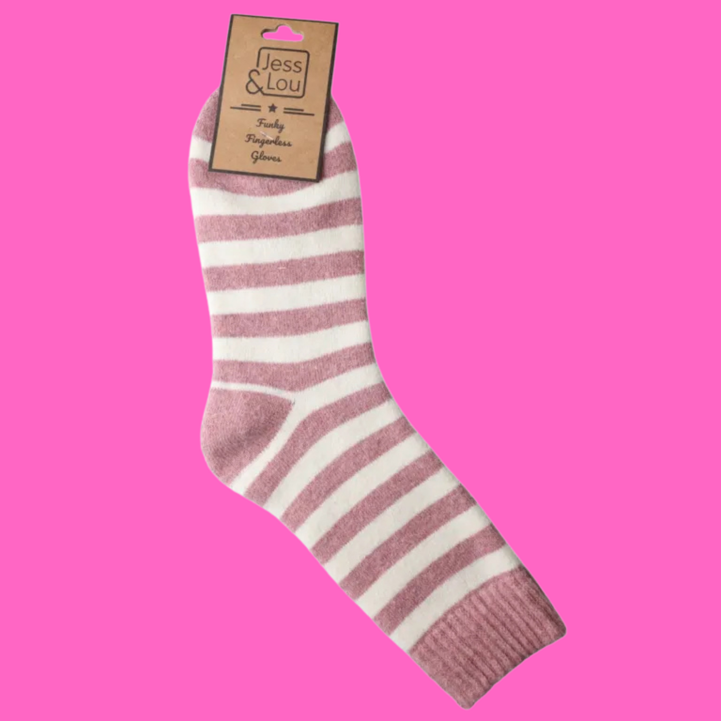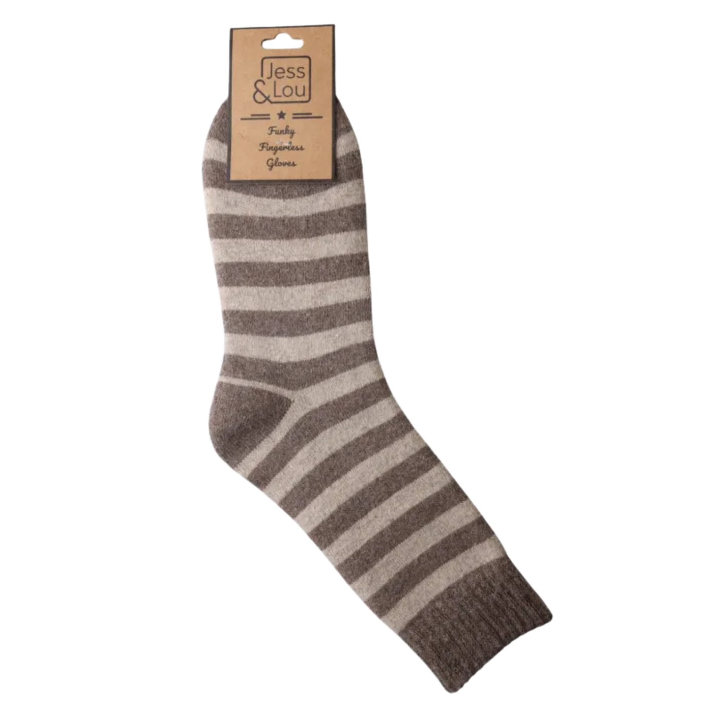 The bold striped design brings a touch of character without trying too hard, making them just as good for quiet nights in as they are for layering under boots on a cold morning.