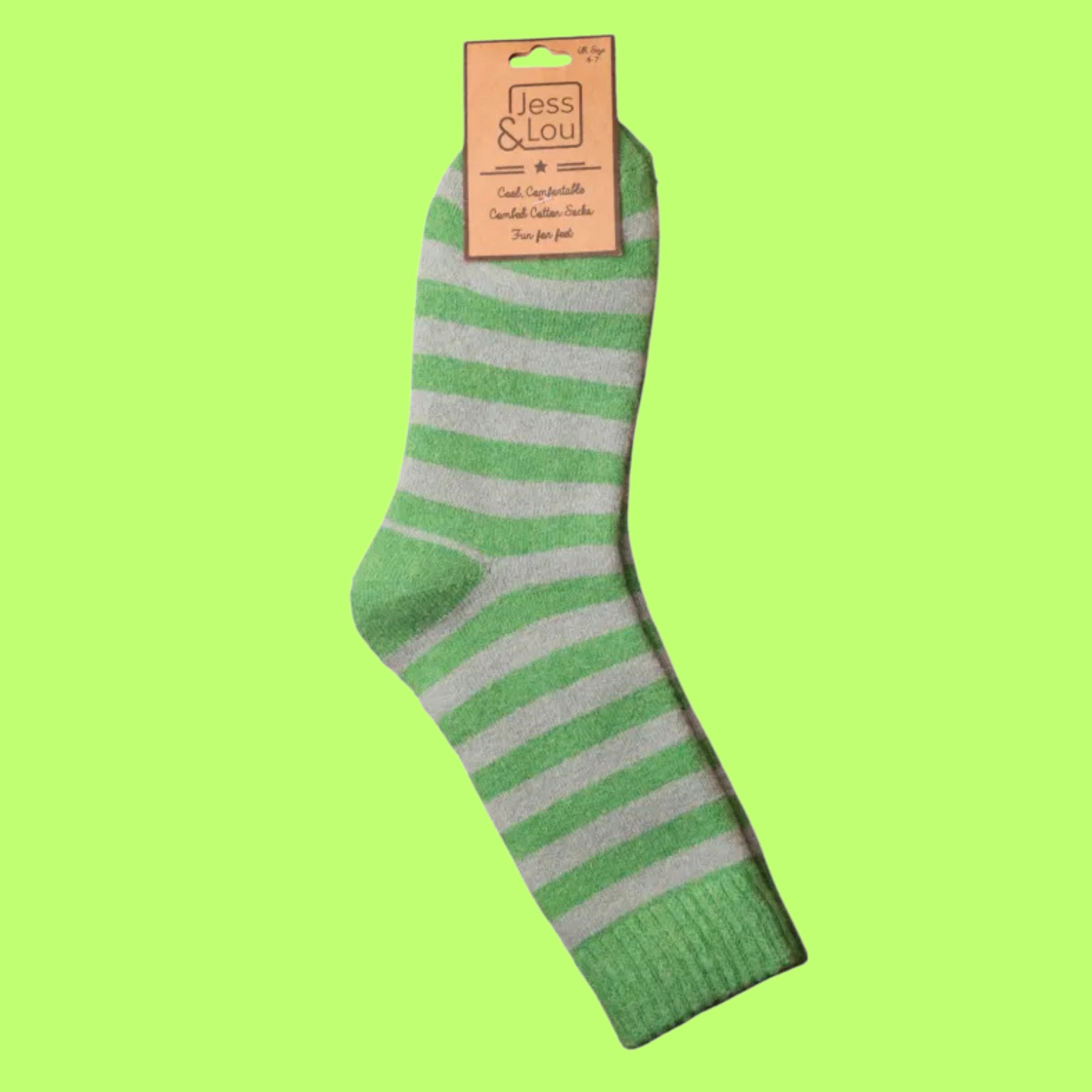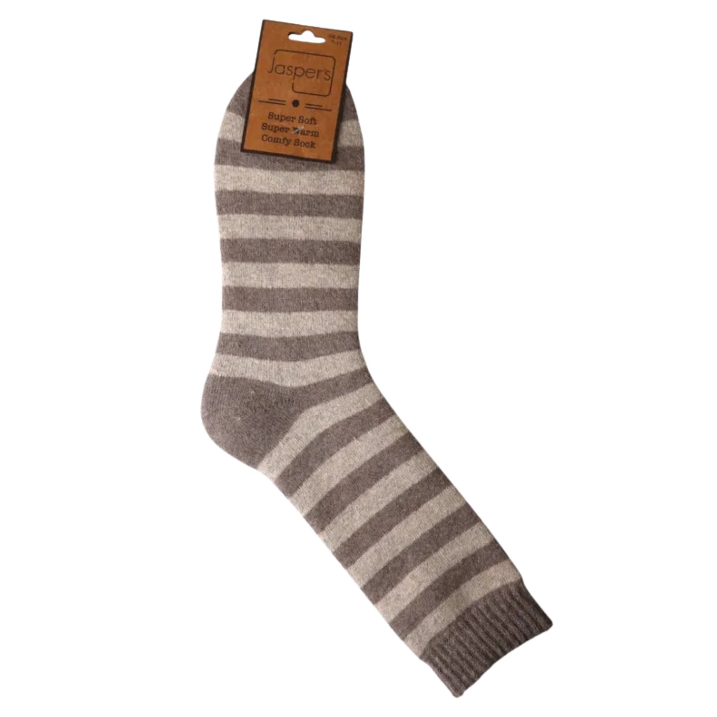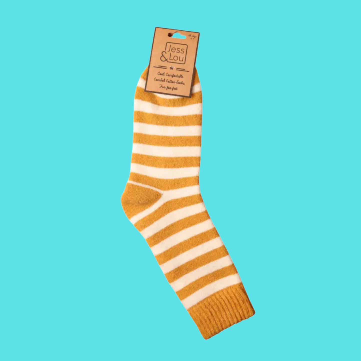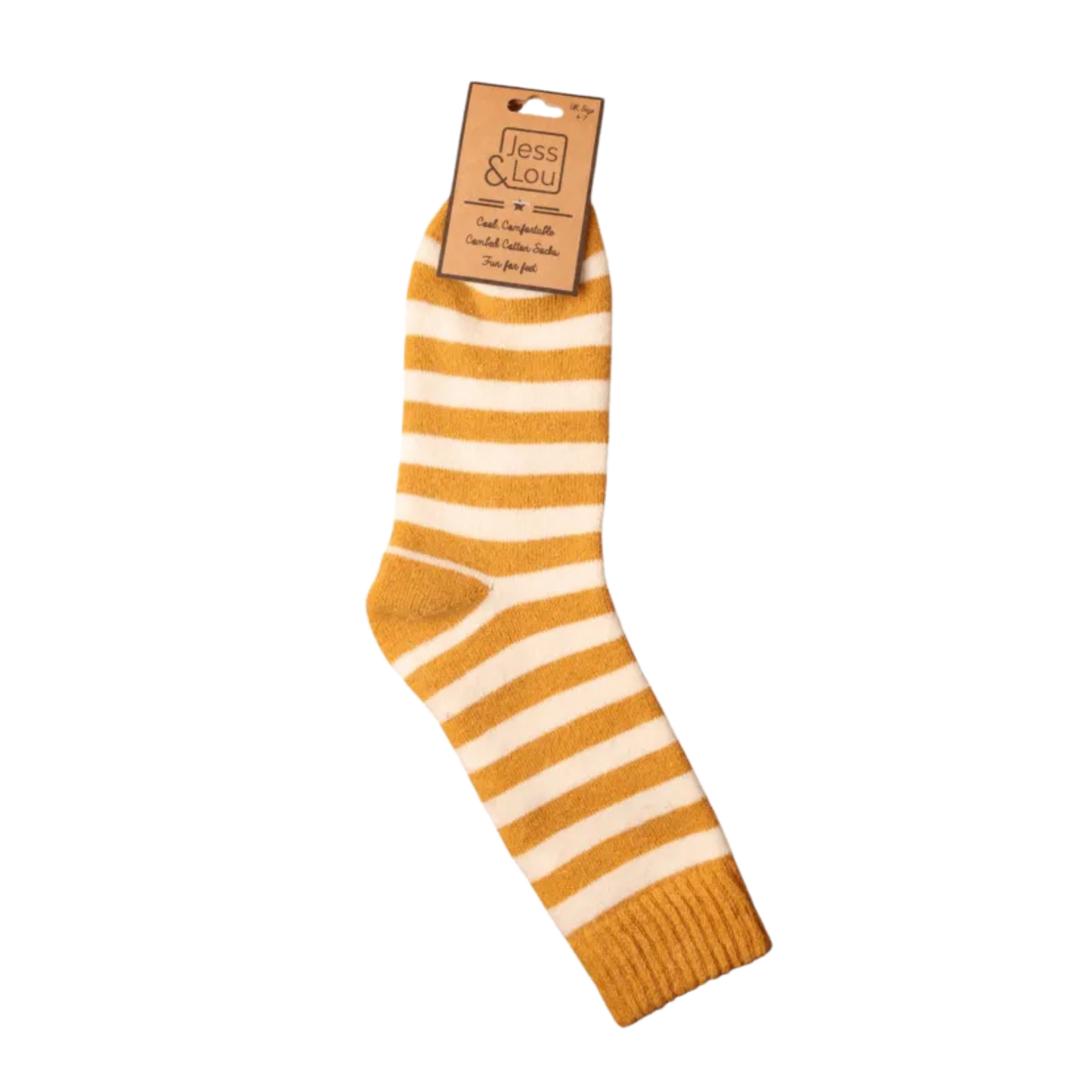 The bold striped design brings a touch of character without trying too hard, making them just as good for quiet nights in as they are for layering under boots on a cold morning.