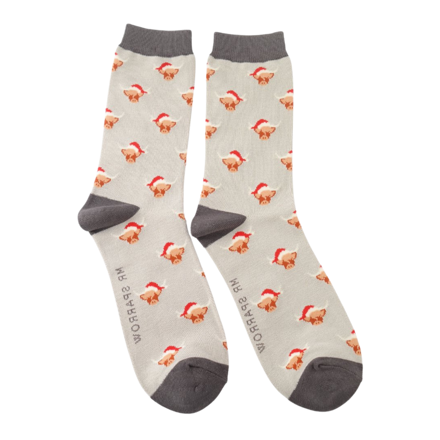 Xmas Highland Cow Bamboo Socks - Miss Sparrow