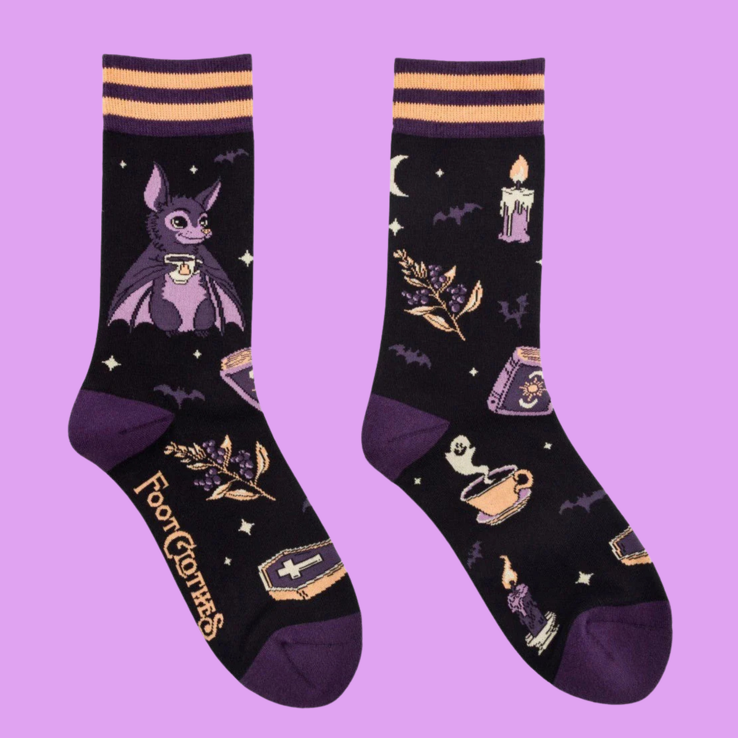 These mischievous socks bring a playful night-time vibe to your feet, perfect for adding a dash of spooky charm to any outfit. Whether you're lurking around the house or showing off your style out and about, Batrick keeps your feet cozy and ready for thrilling adventures after dark.