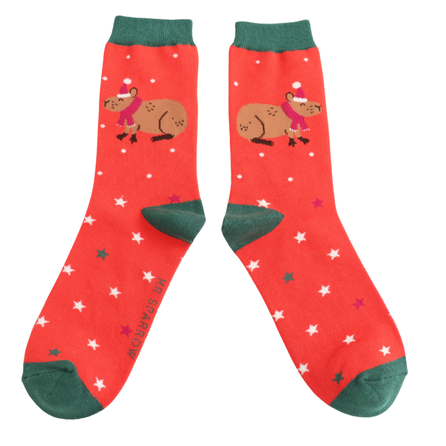 Christmas Capybara Bamboo Socks - Miss Sparrow