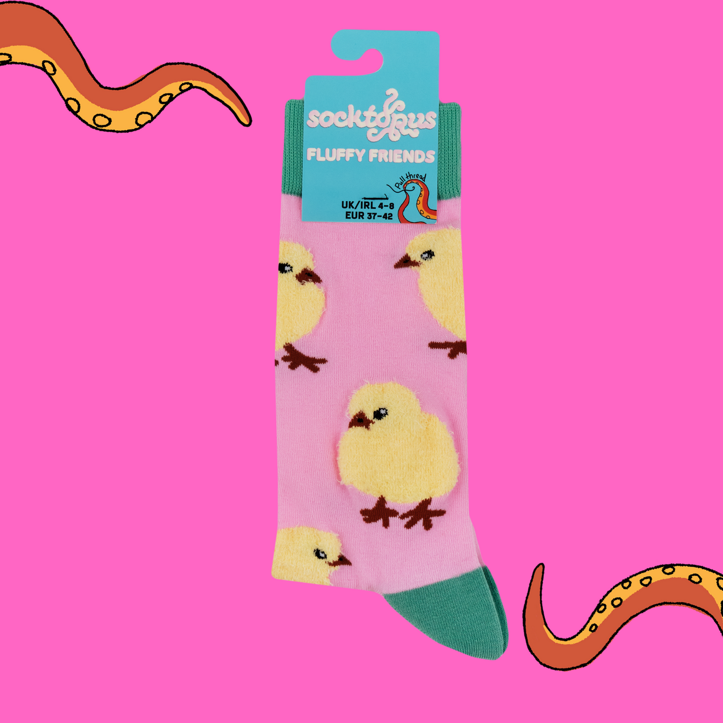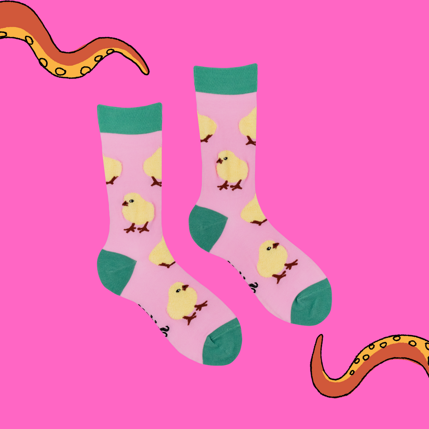 Featuring a cute and cheerful chick design, these socks add a playful pop of fun to your outfit.