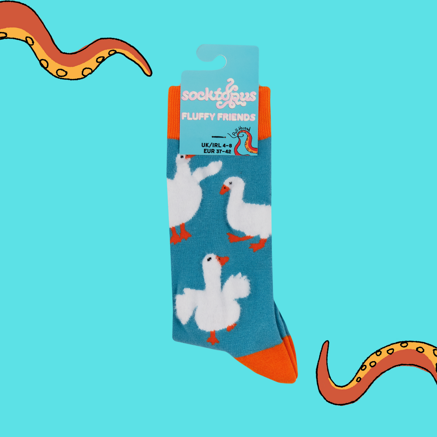 Add a splash of fun to your feet with these Fluffy Silly Goose Socks!