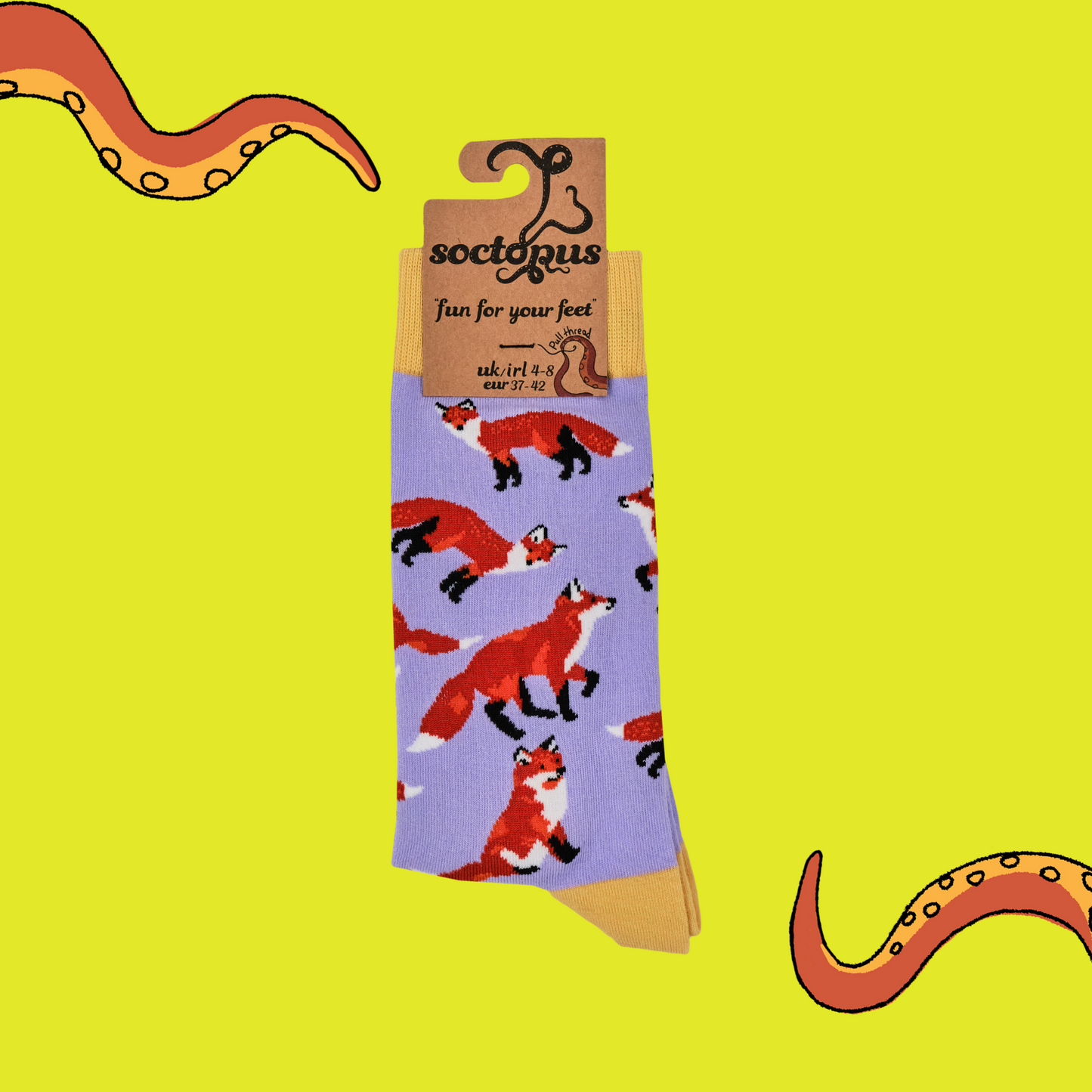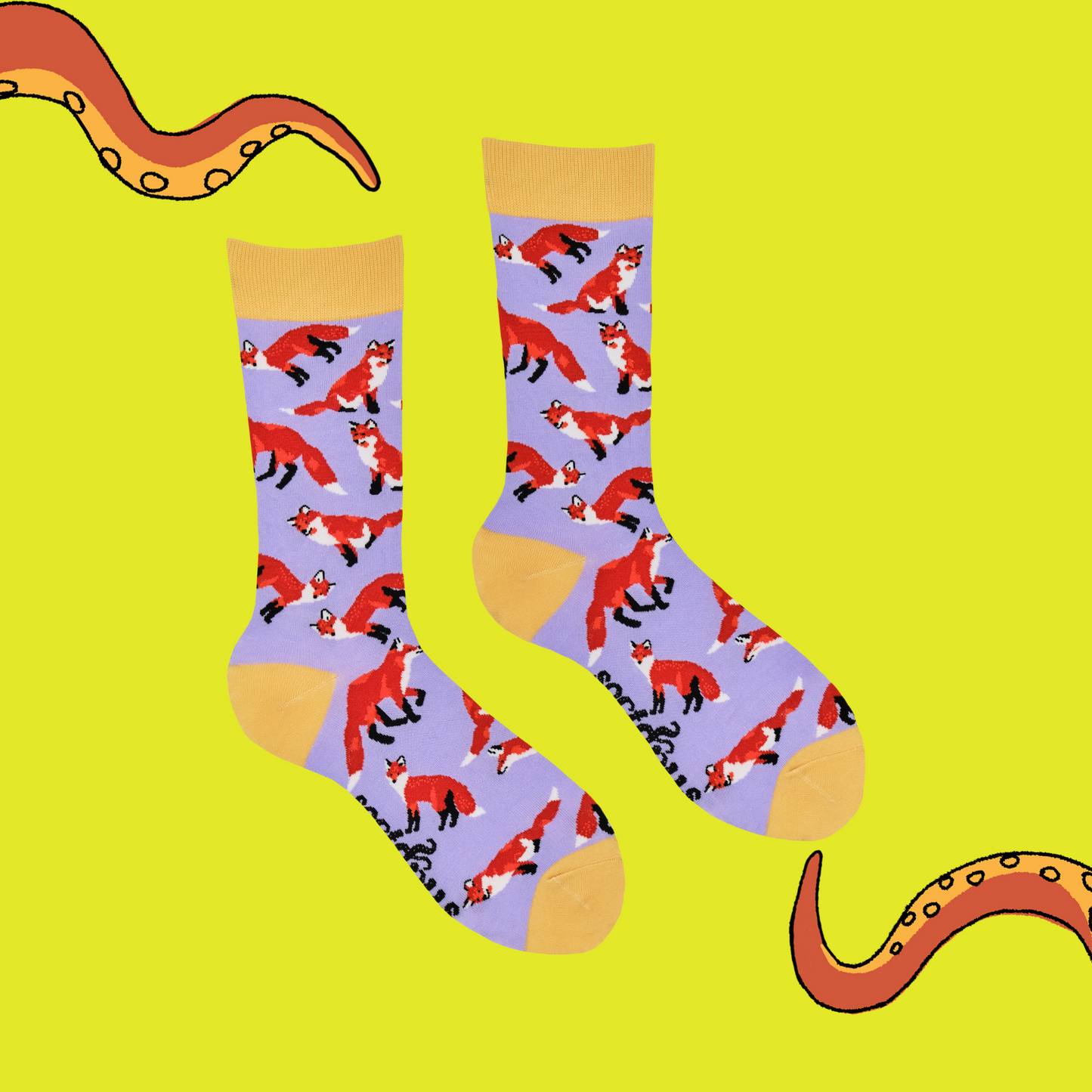 These quirky and playful socks feature adorable fox designs, perfect for adding a touch of fun to any outfit.