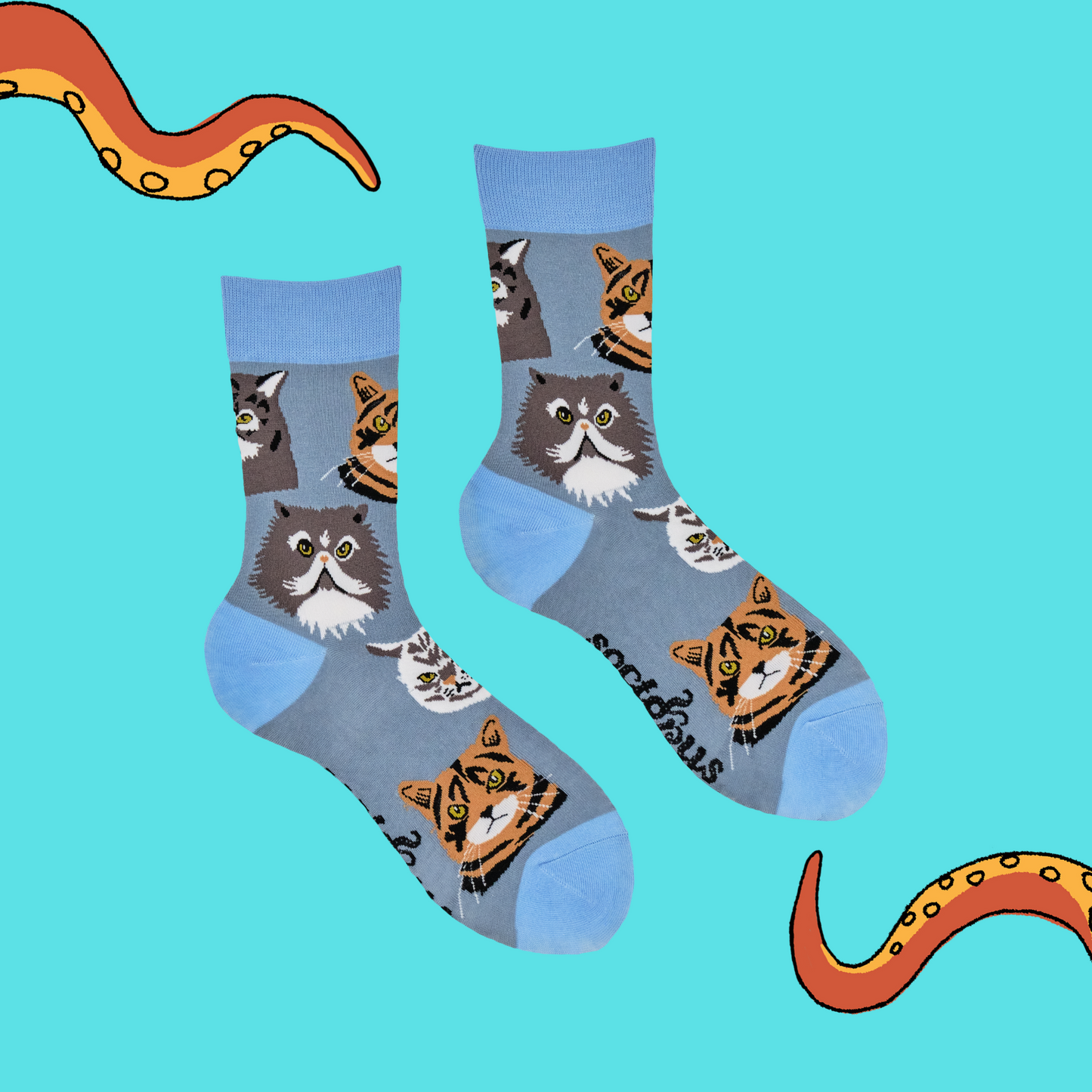 Perfect for cat lovers and those who embrace their grumpy side. (Meow-vellous socks for a paws-itively grumpy look!)