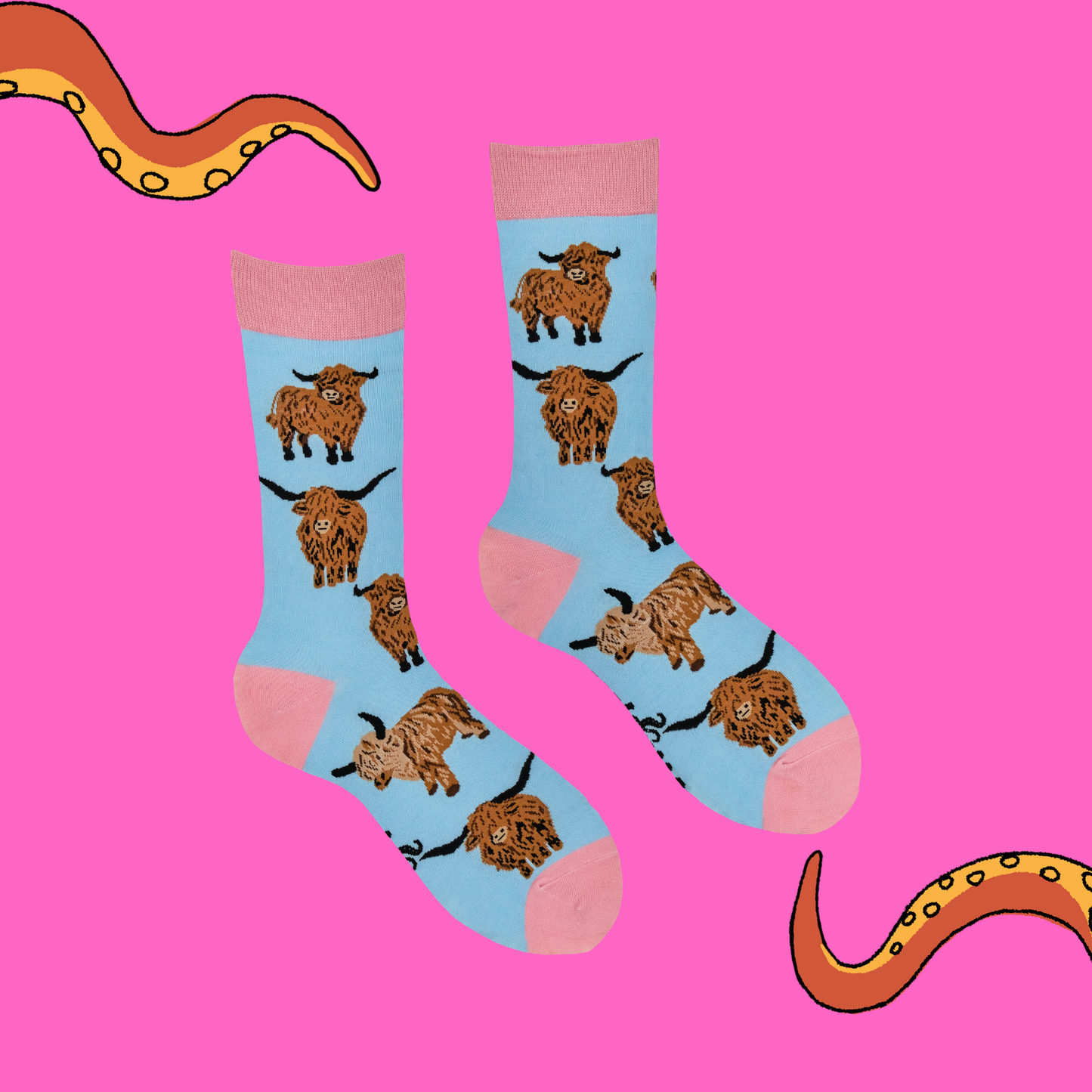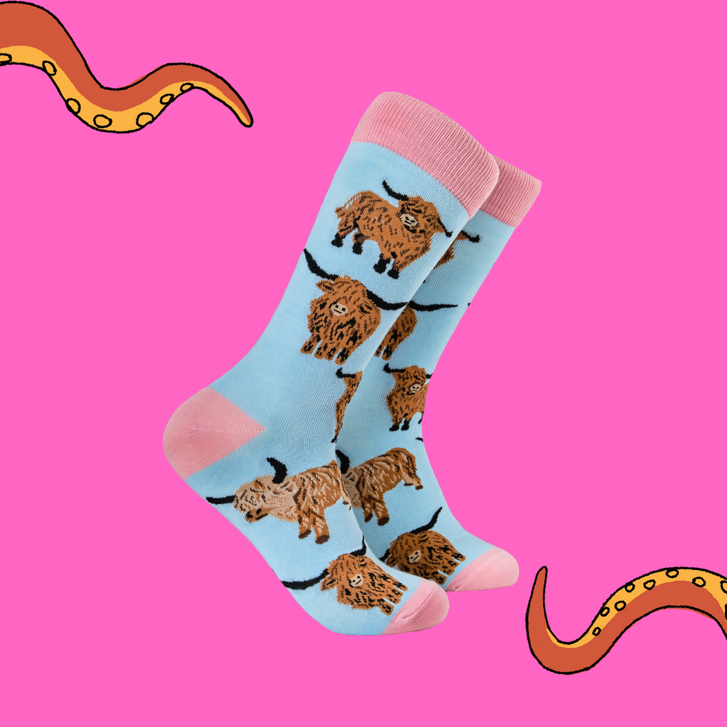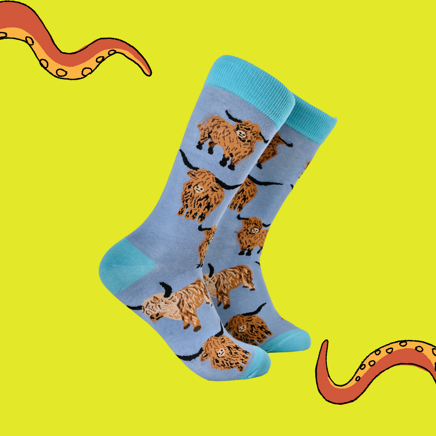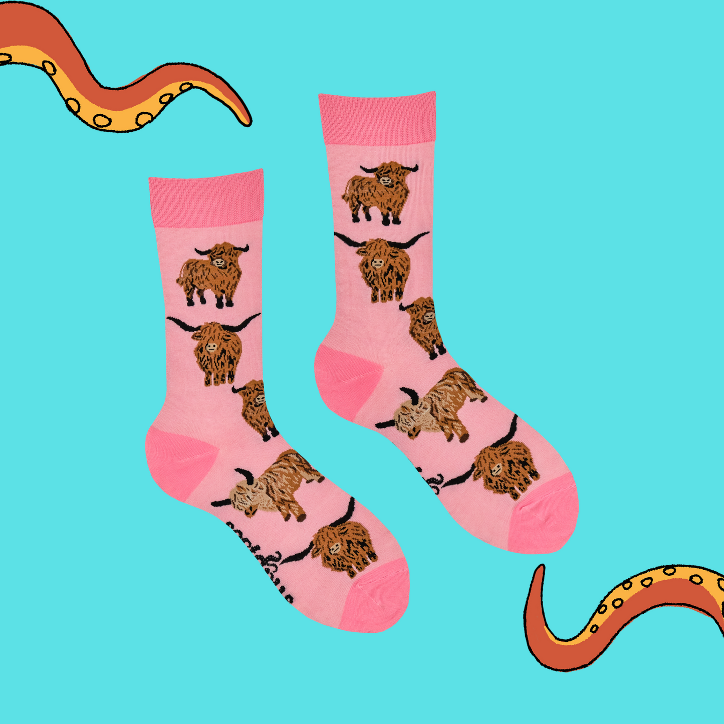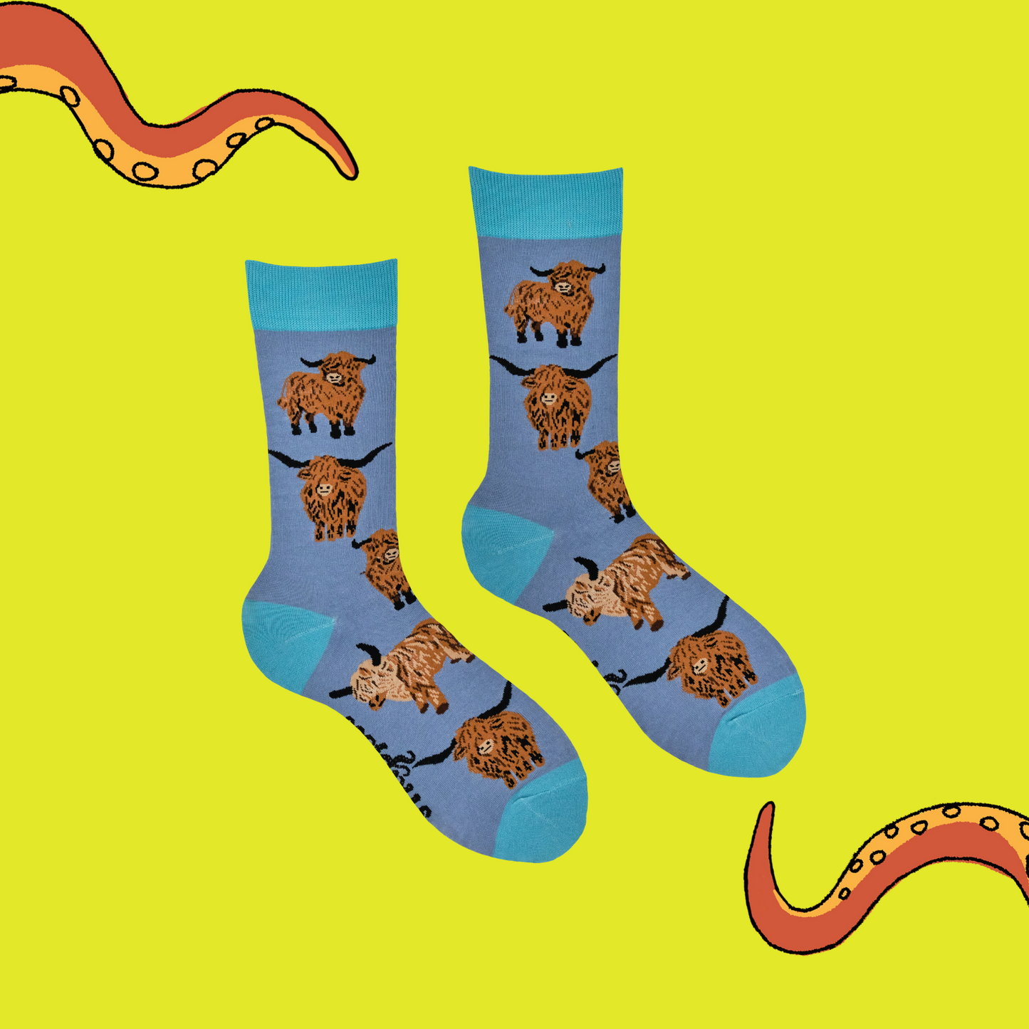 Moo-ve over boring socks, these Highland Cow Socks will bring a dose of fun to your feet! Made in 7 playful colours, these socks feature the iconic Highland Cow design inspired by Scotland's famously loved beasts.