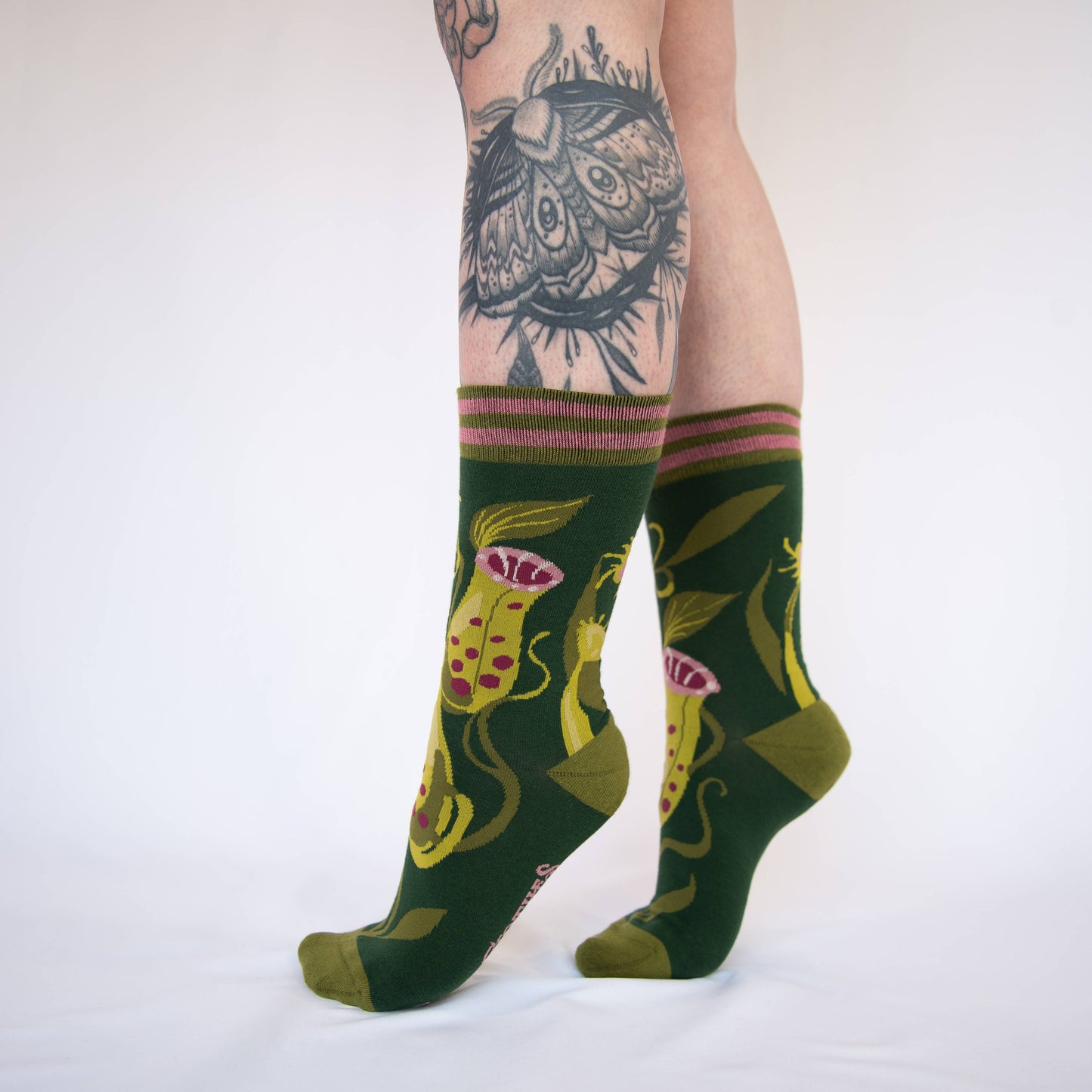 Add a wild touch to your feet with our Pitcher Plant Crew Socks!