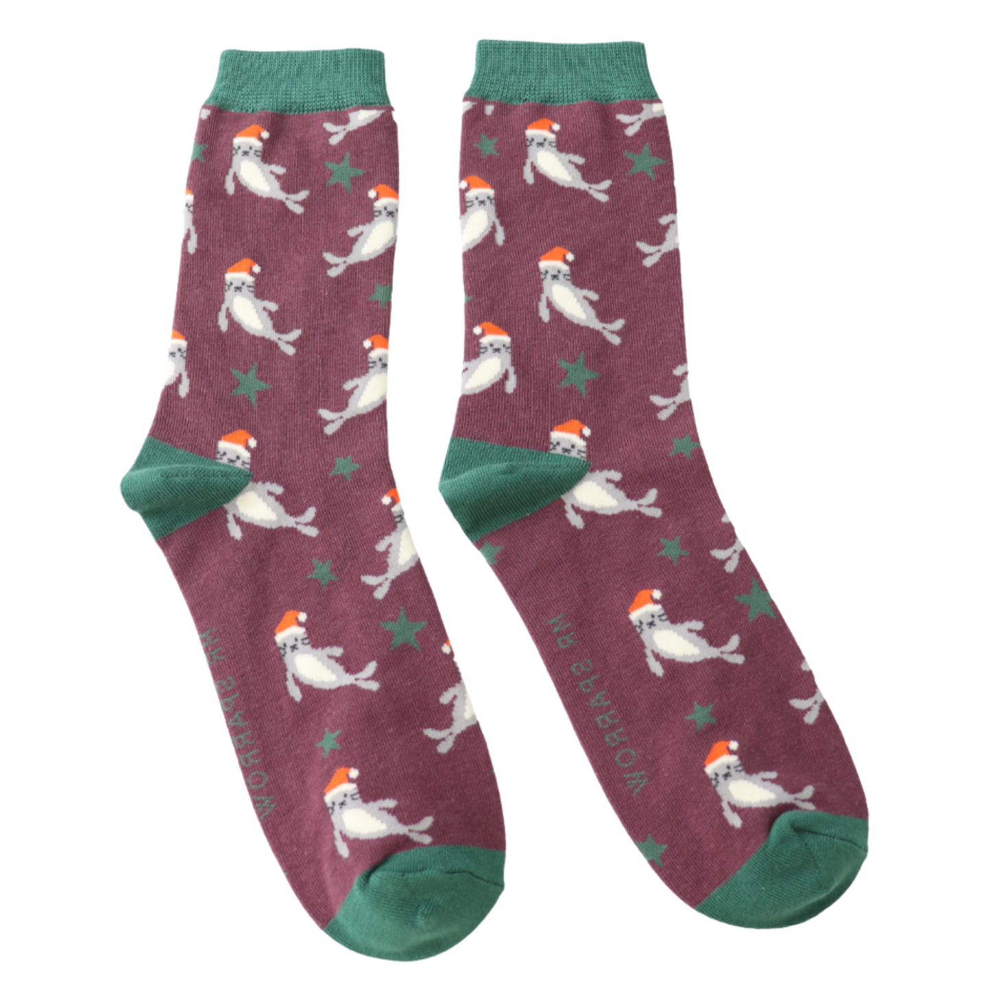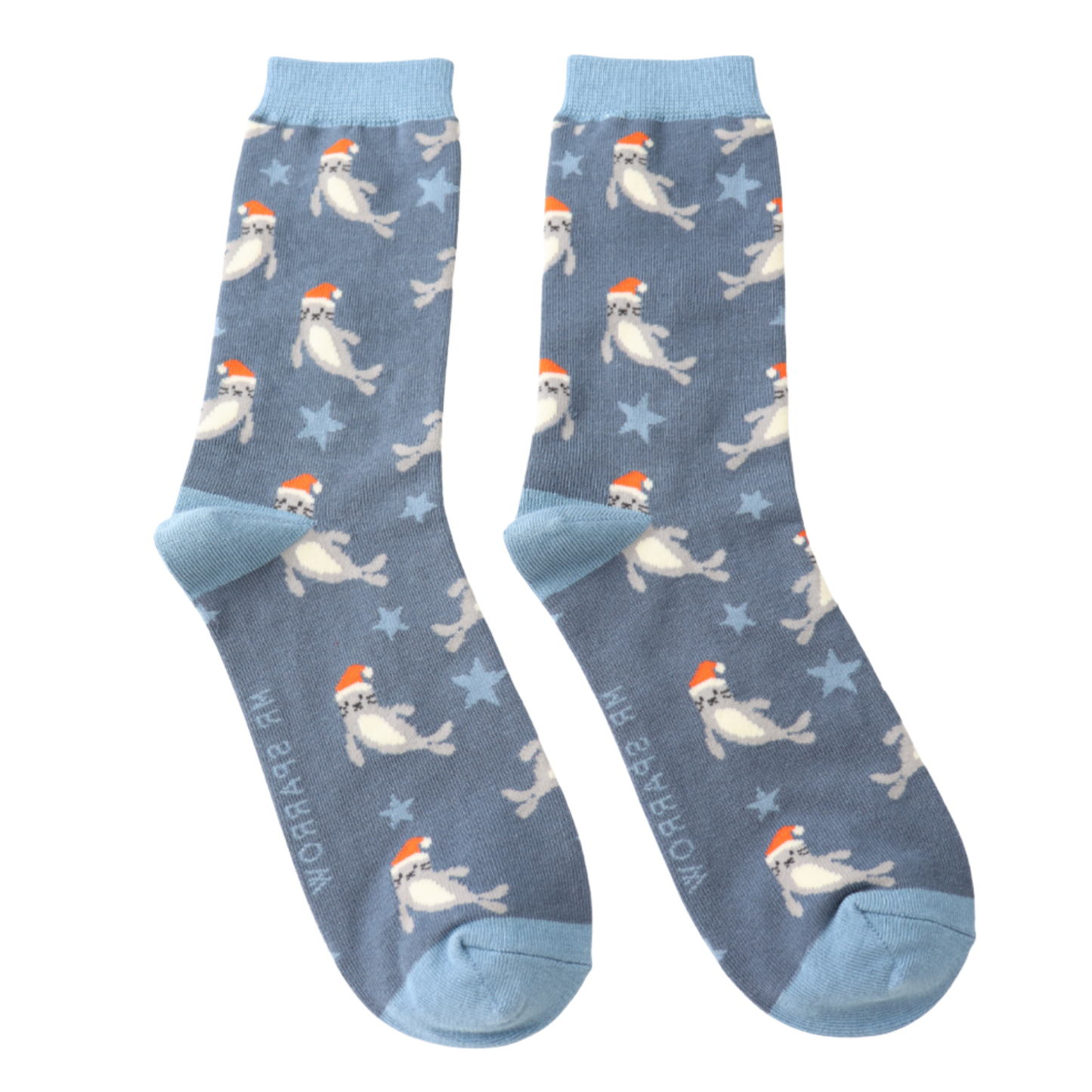Step into festive fun with Santa Seals Bamboo Socks by Miss Sparrow!