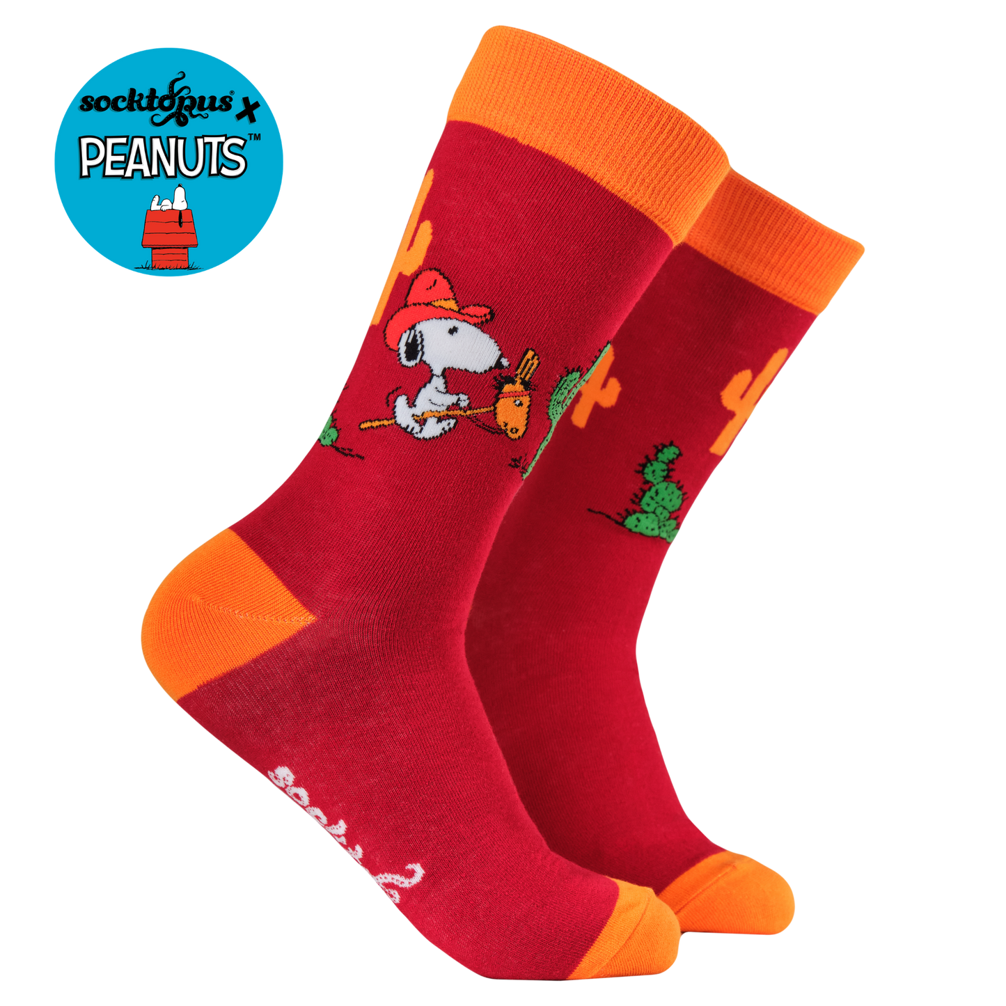 Cowboy Capybara Trainer Socks. A pair of trainer socks featuring our best selling cowboy capybara design. Blue foot, red heel, toe and cuff.