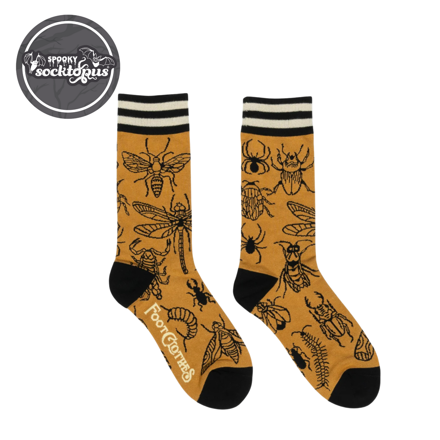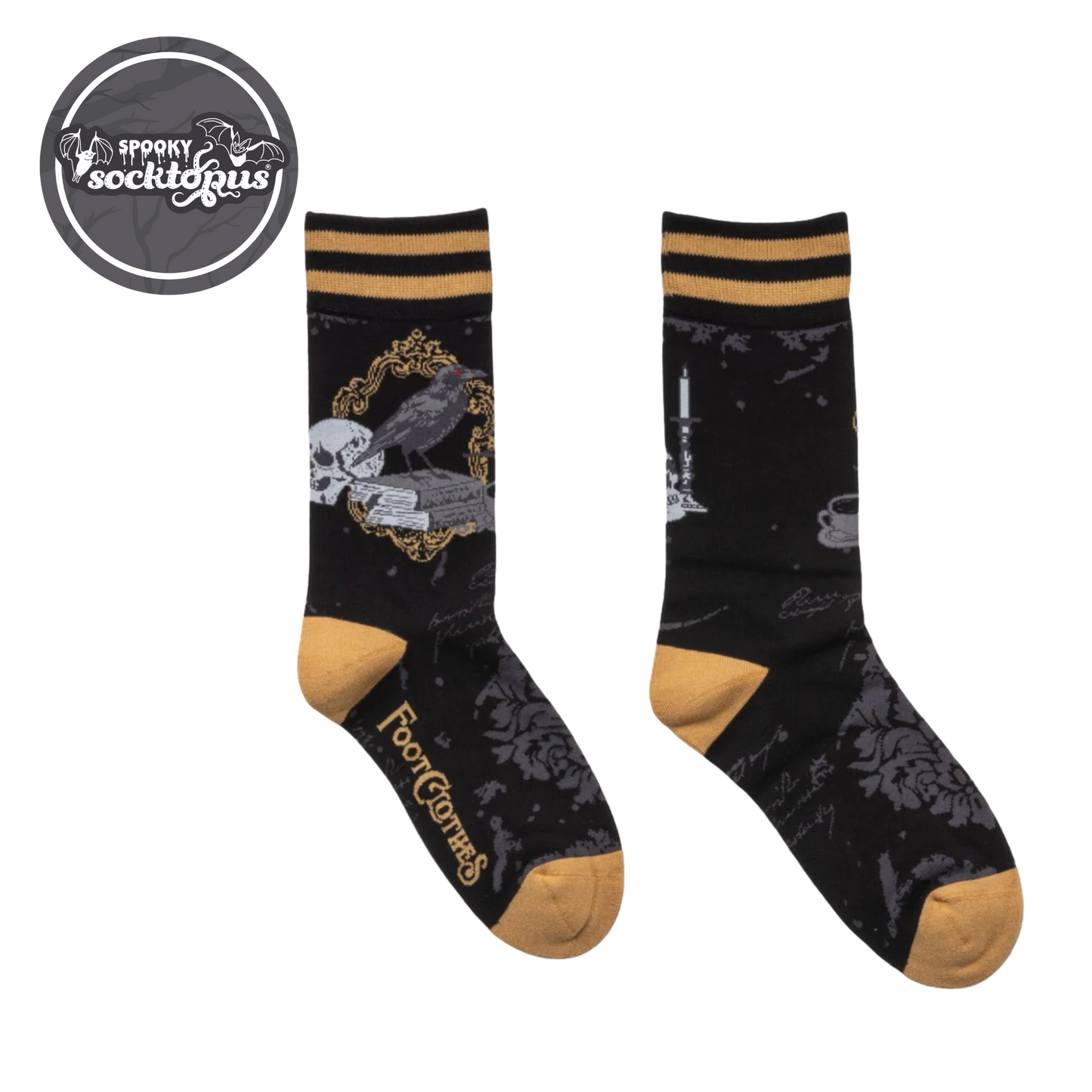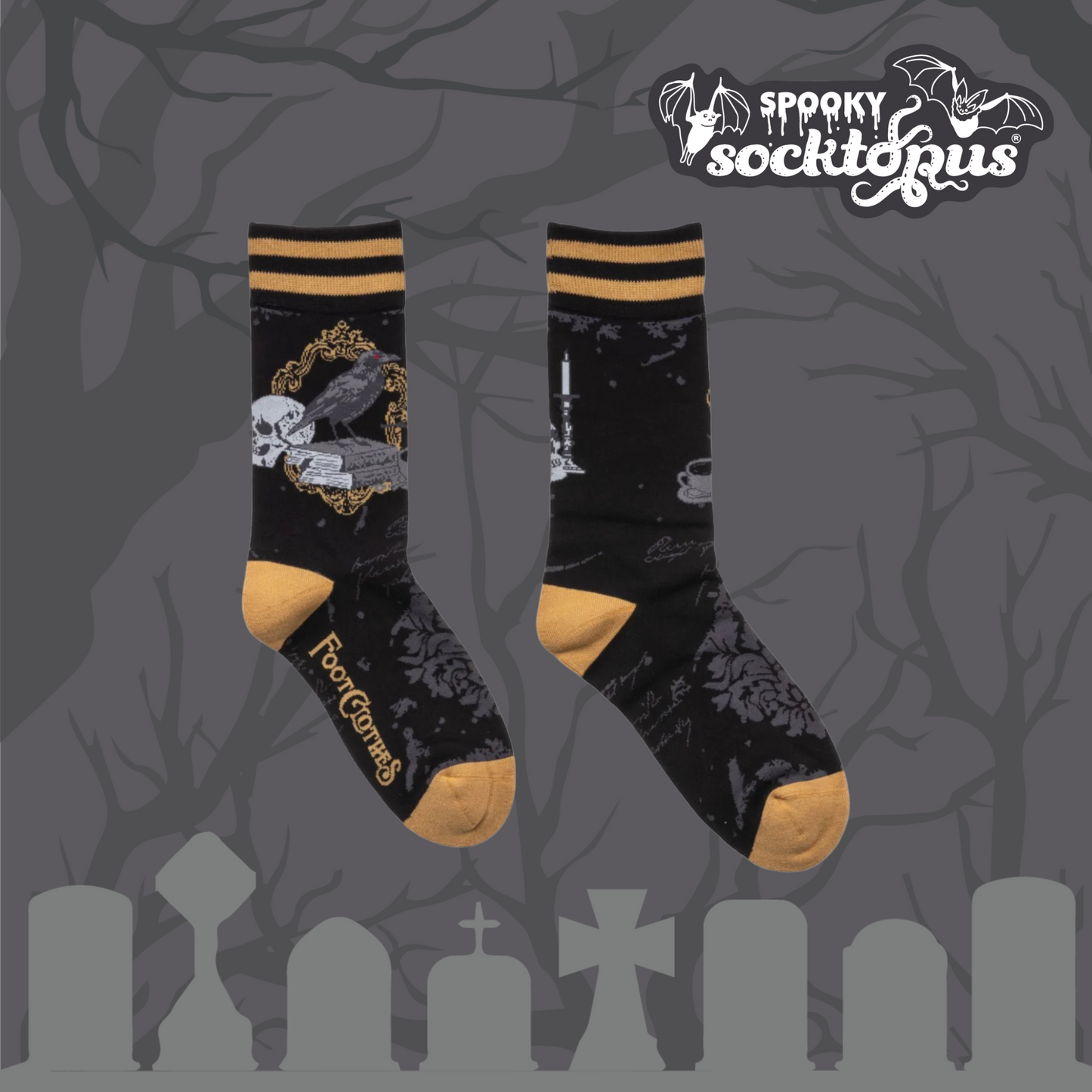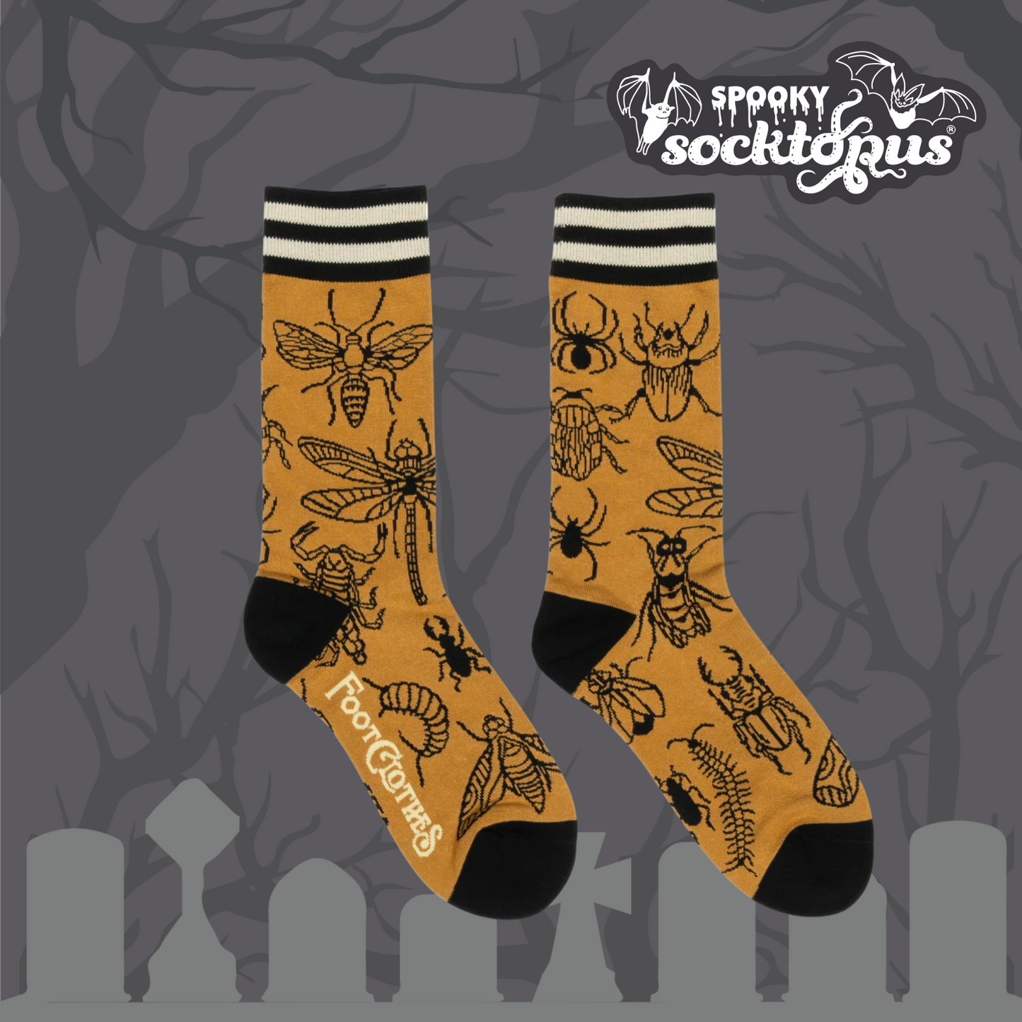 El Chupacabra Crew Socks. A pair of socks featuring El Chupacabra. Green legs, heel, toe and cuff.