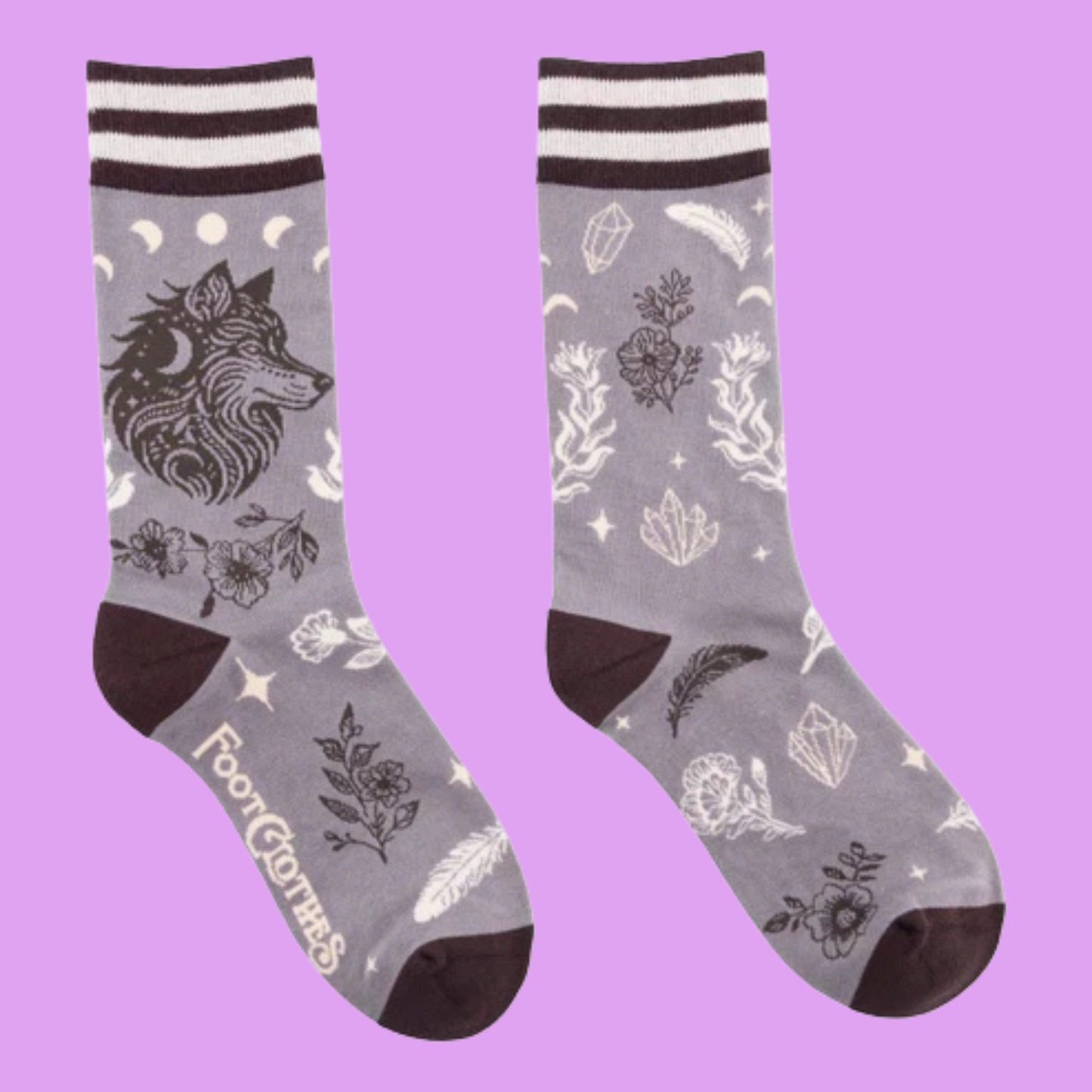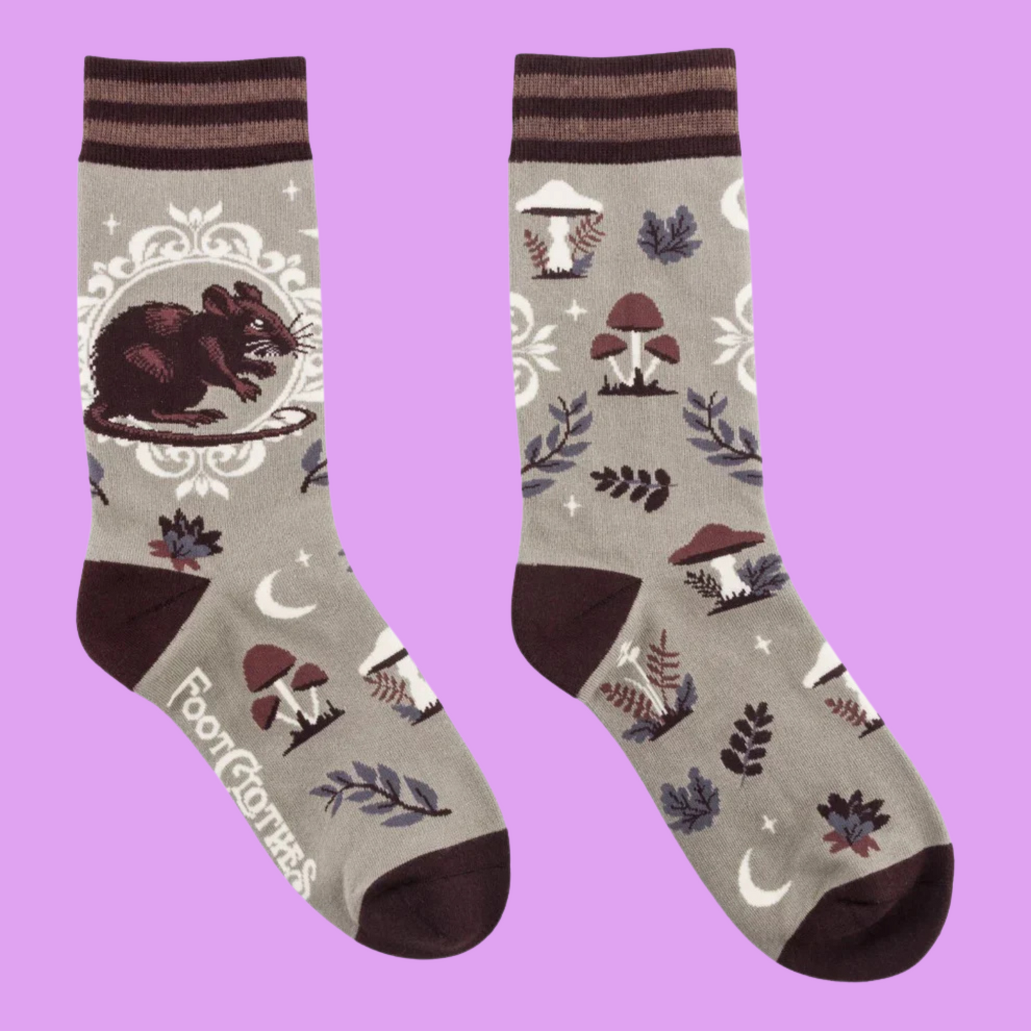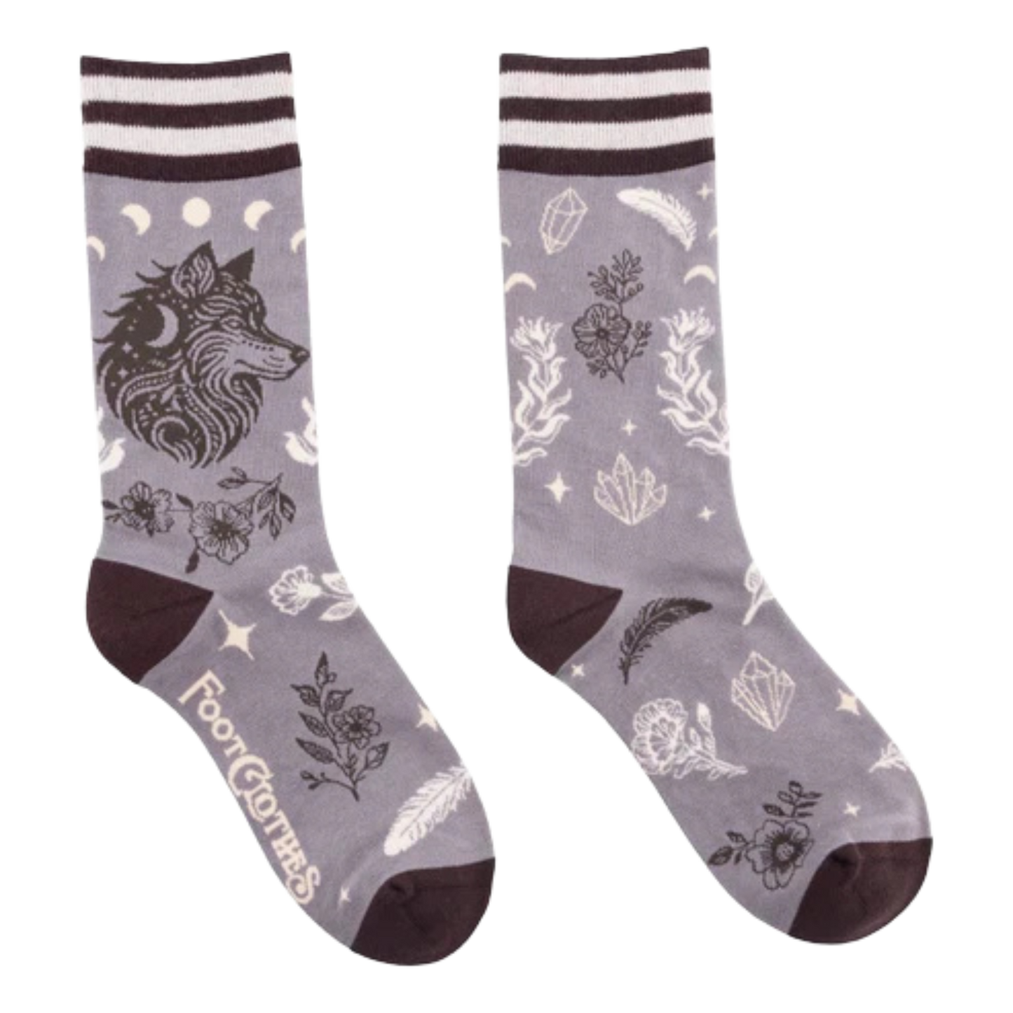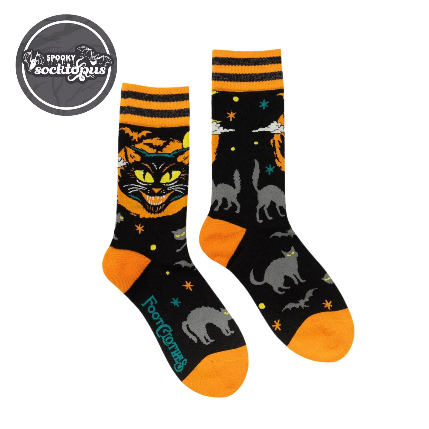 El Chupacabra Crew Socks. A pair of socks featuring El Chupacabra. Green legs, heel, toe and cuff.