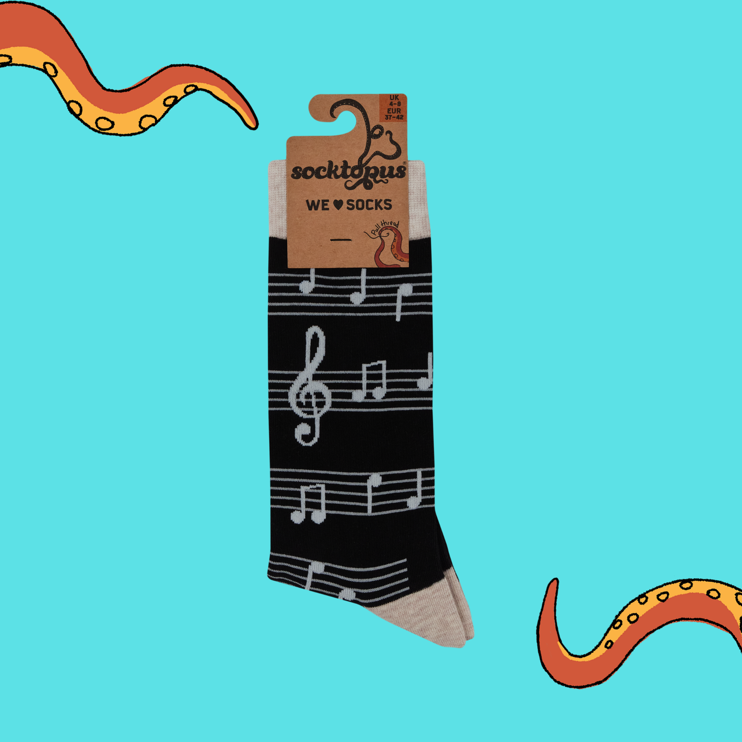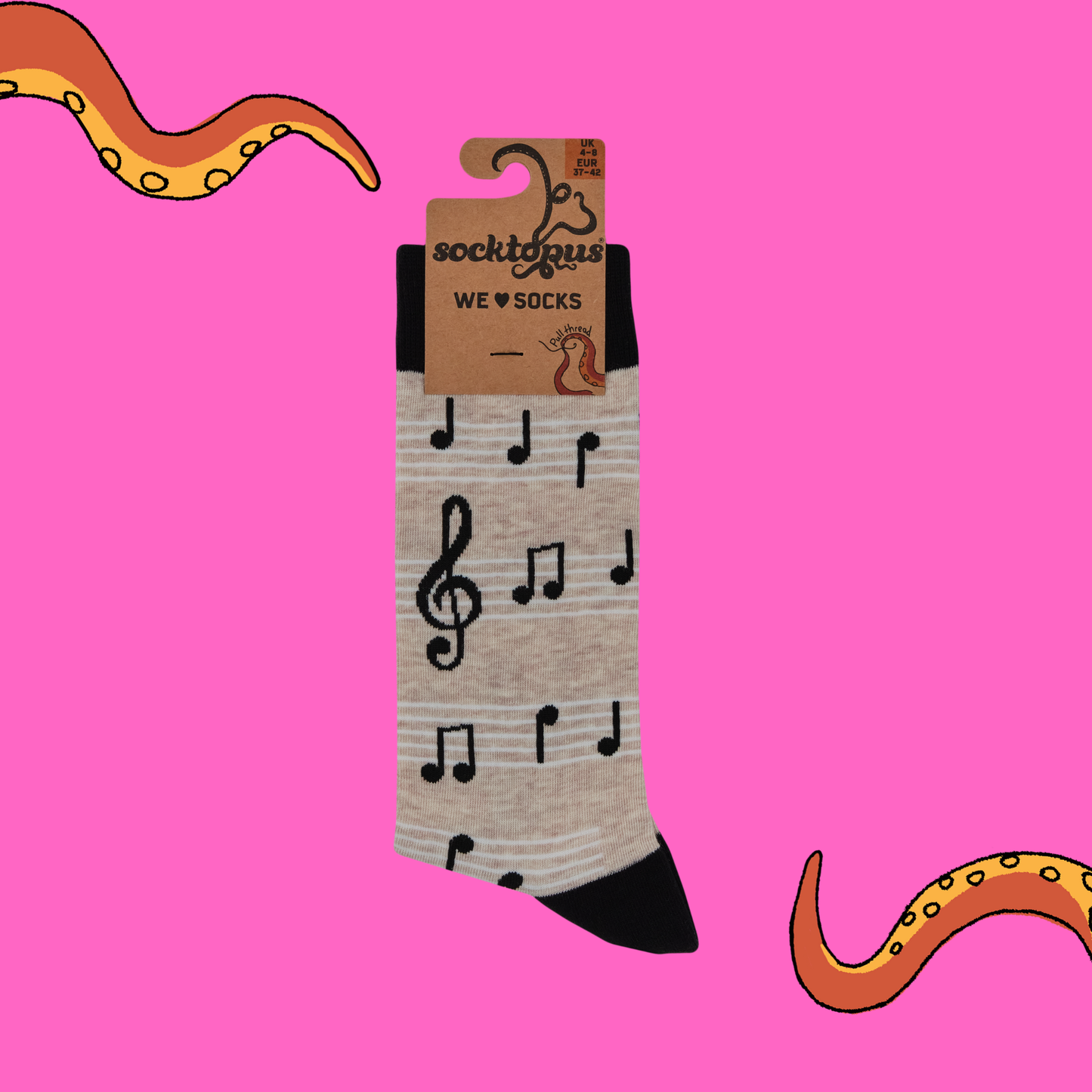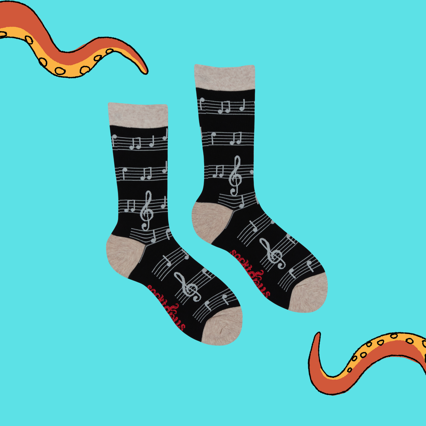 Ideal for musicians, music lovers, and anyone who appreciates a clever pun, they blend soft, cosy fabric with whimsical style. Whether you're tinkling the ivories or just tinkling around the house, these socks hit all the right notes. A harmonious addition to any sock collection!