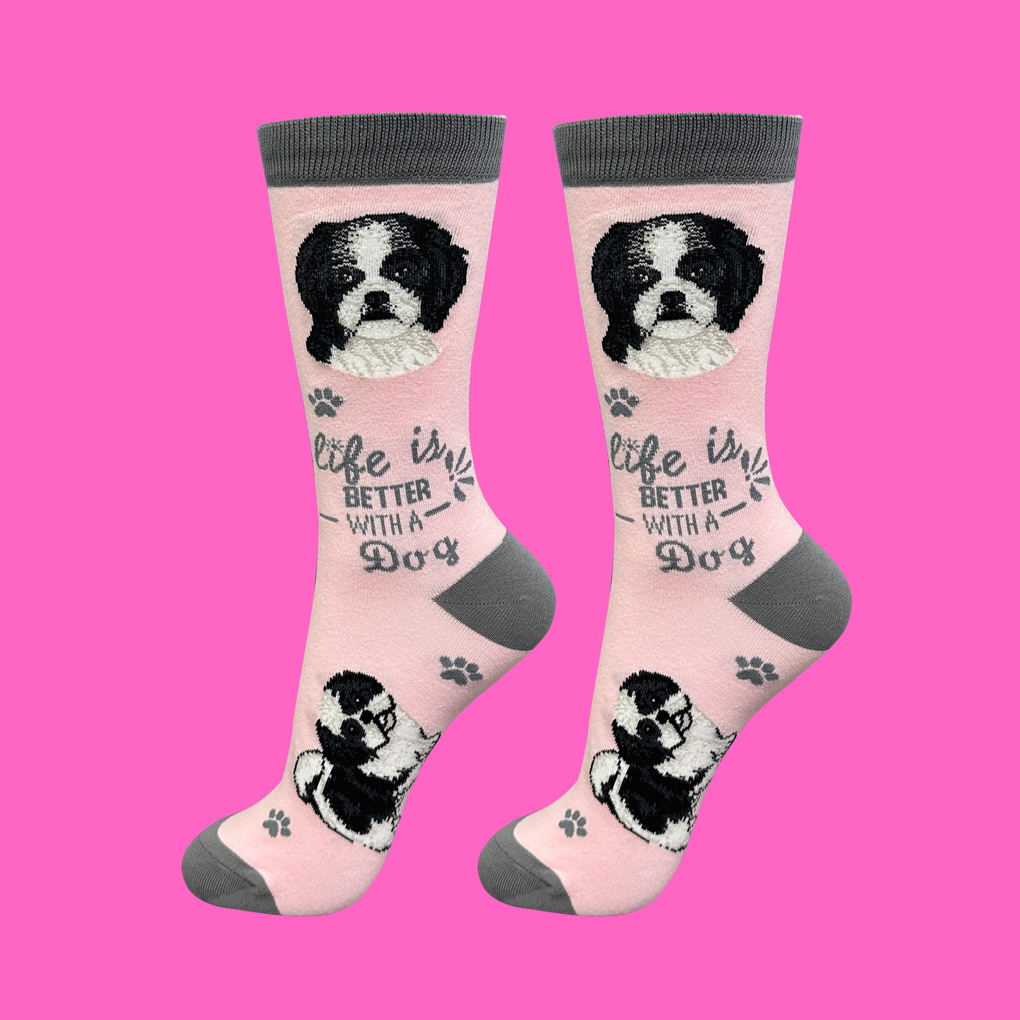 Channel your inner dog lover with these Black Shih Tzu Dog Socks!