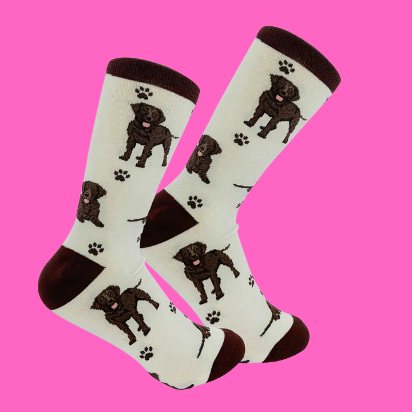 Designed for dog lovers, these socks feature a playful chocolate labrador print from top to toe.