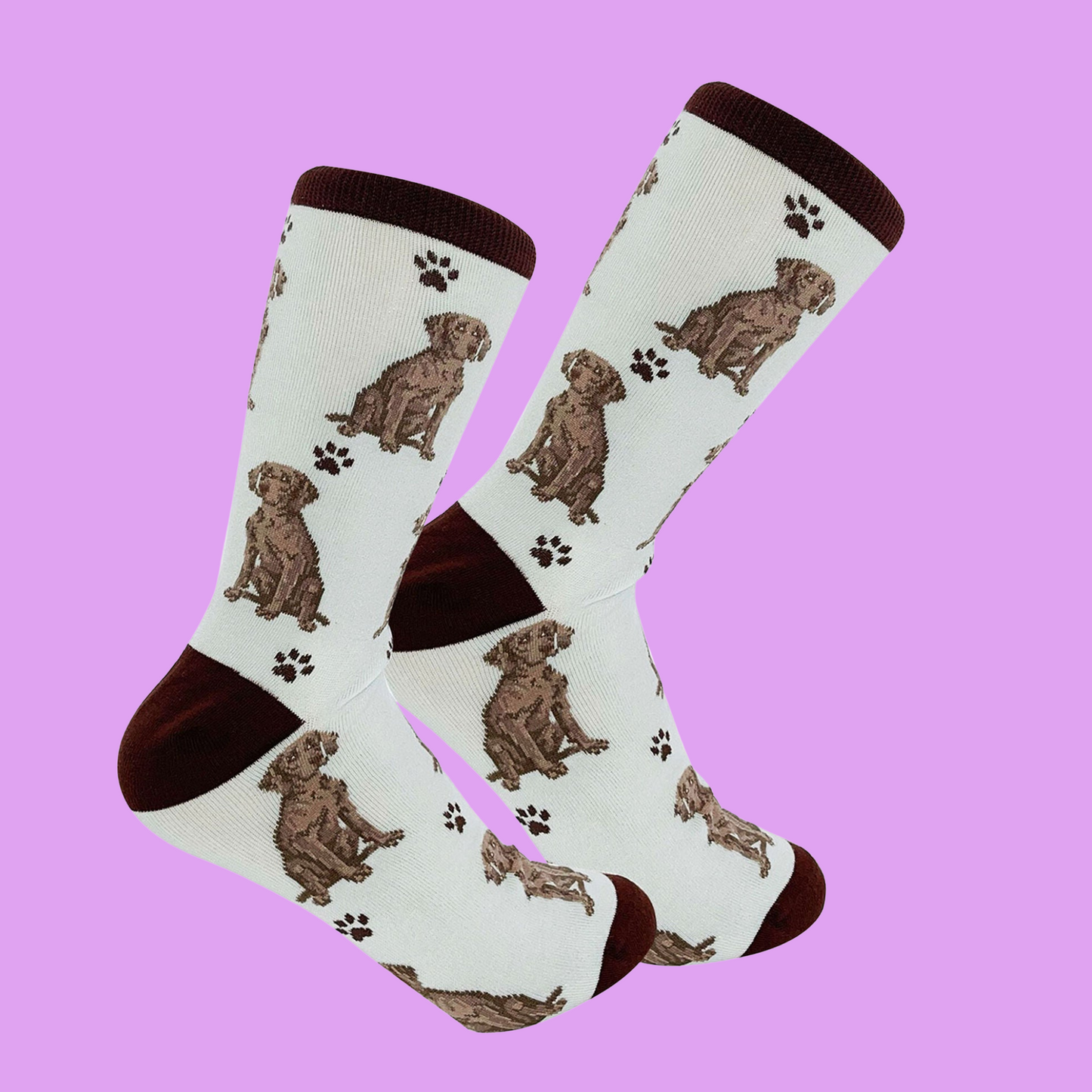 These quirky and fun socks feature a full-body design of the beloved Weimaraner dog breed.
