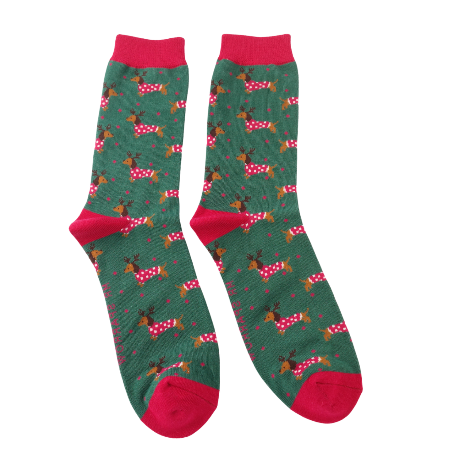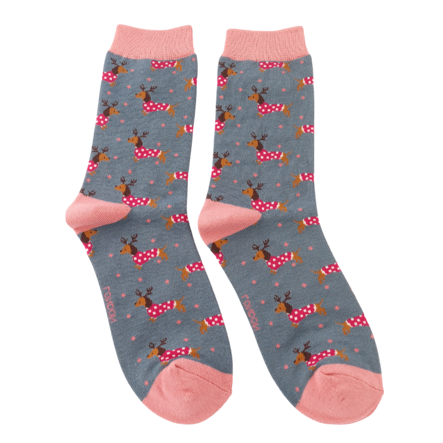Xmas Sausage Dogs Bamboo Socks - Miss Sparrow