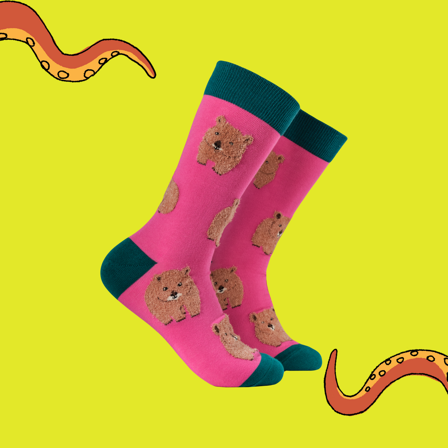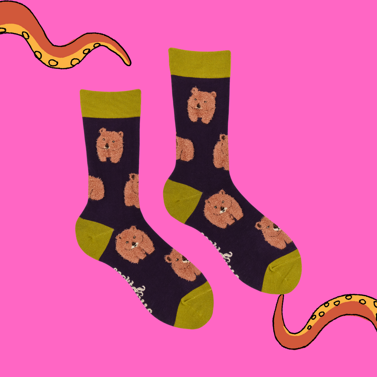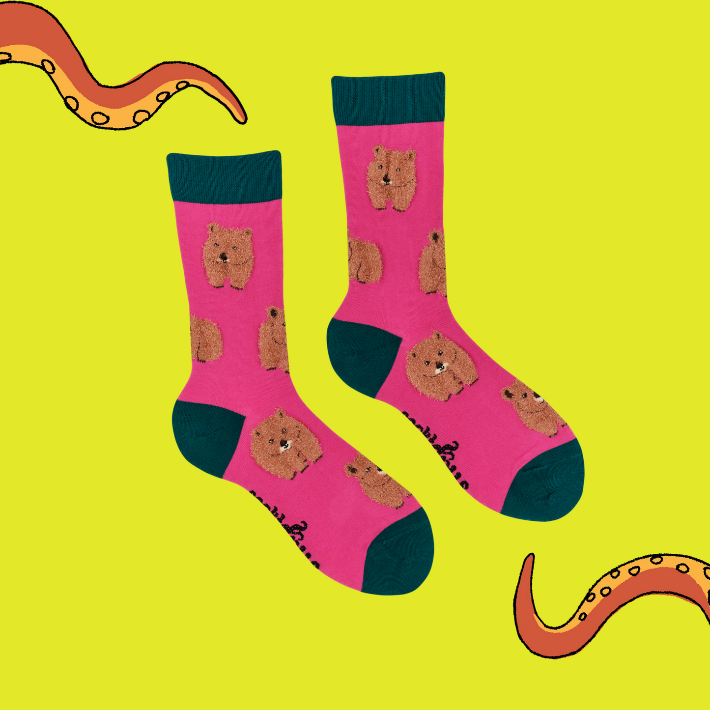 Featuring a cute wombat design, these socks bring a playful and cuddly vibe to your everyday style.