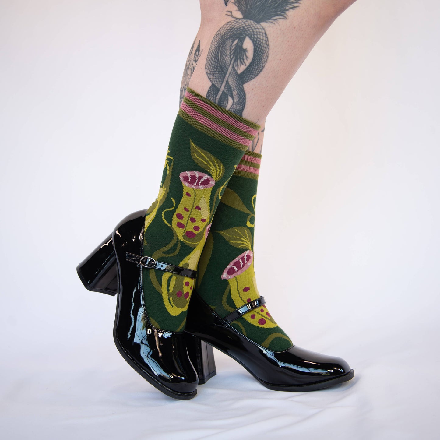 Add a wild touch to your feet with our Pitcher Plant Crew Socks!