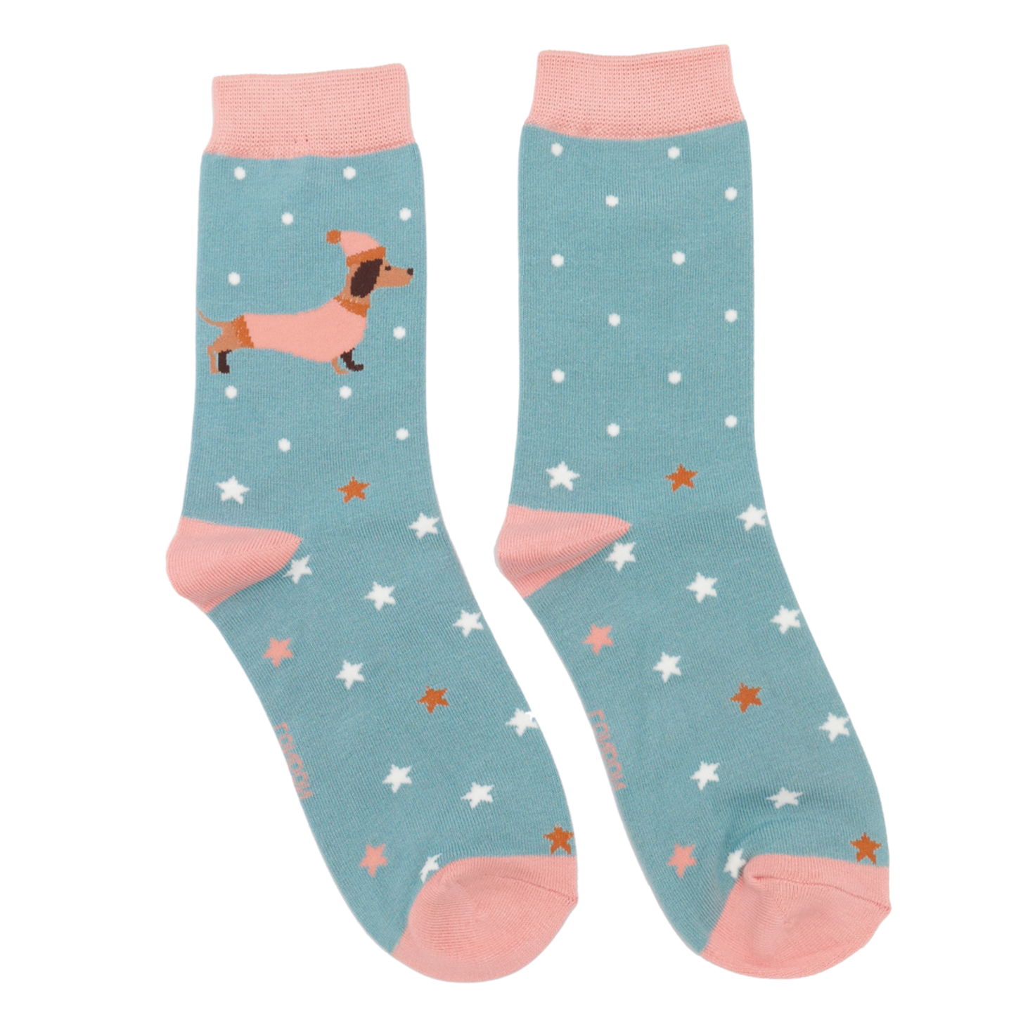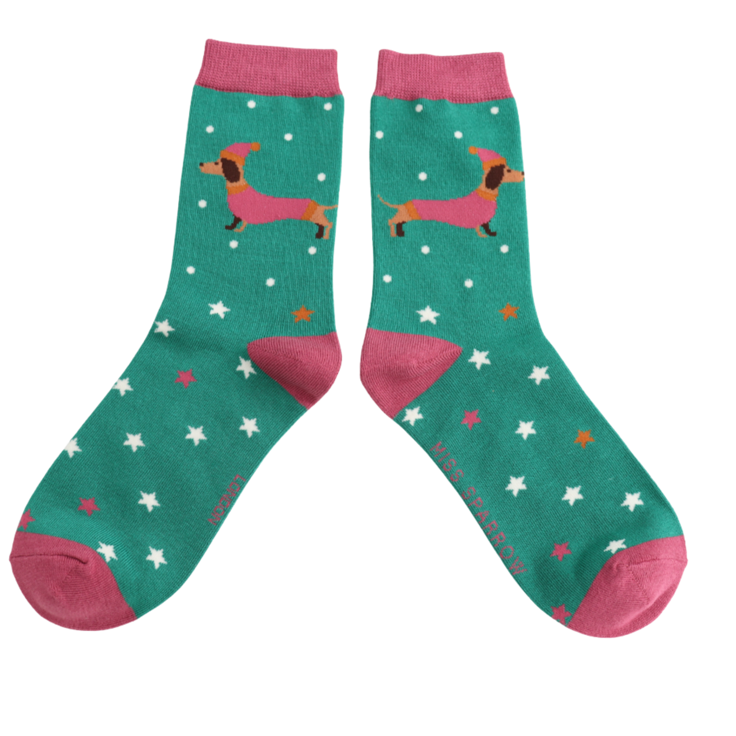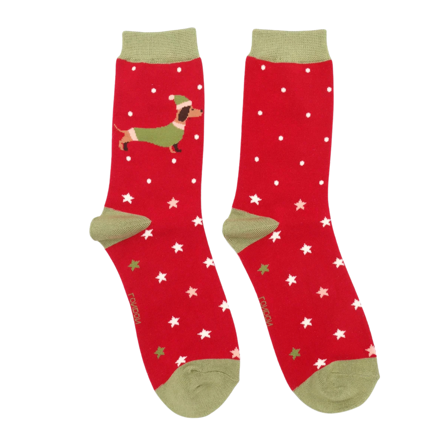 Festive Sausage Dogs Bamboo Socks - Miss Sparrow