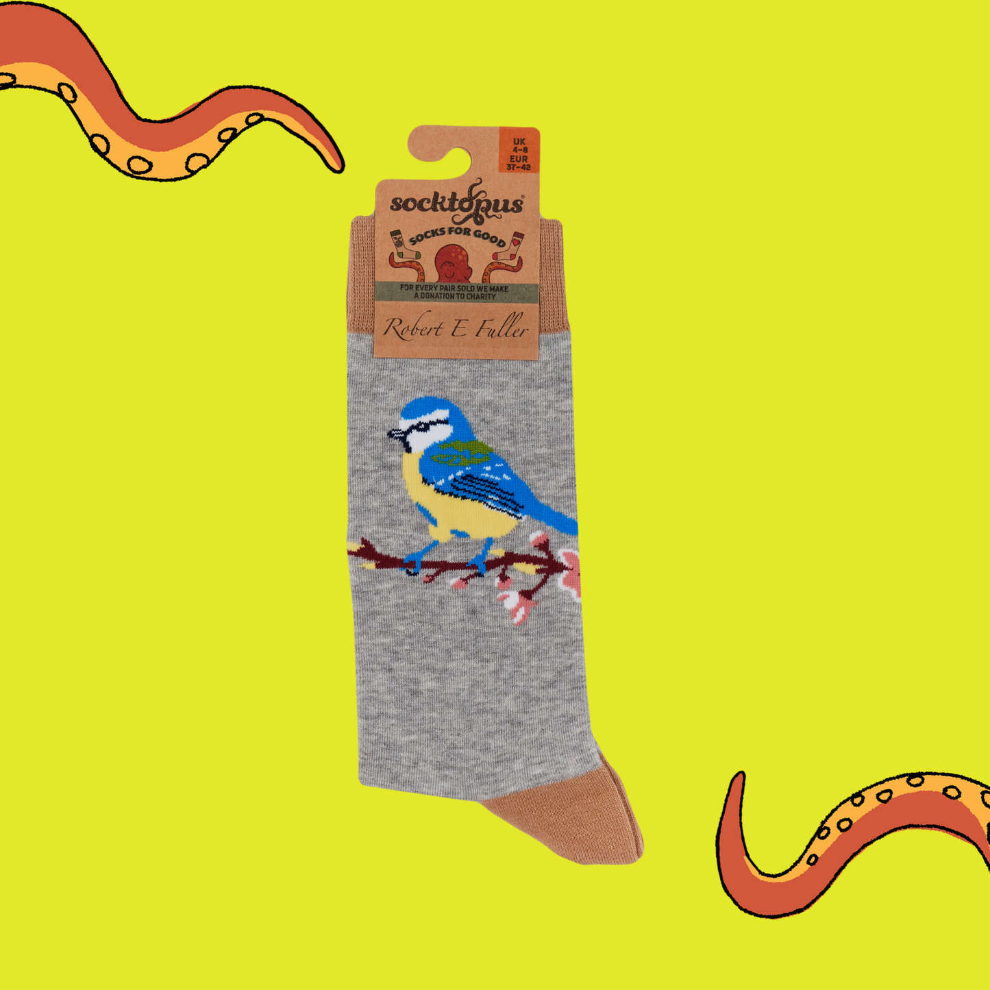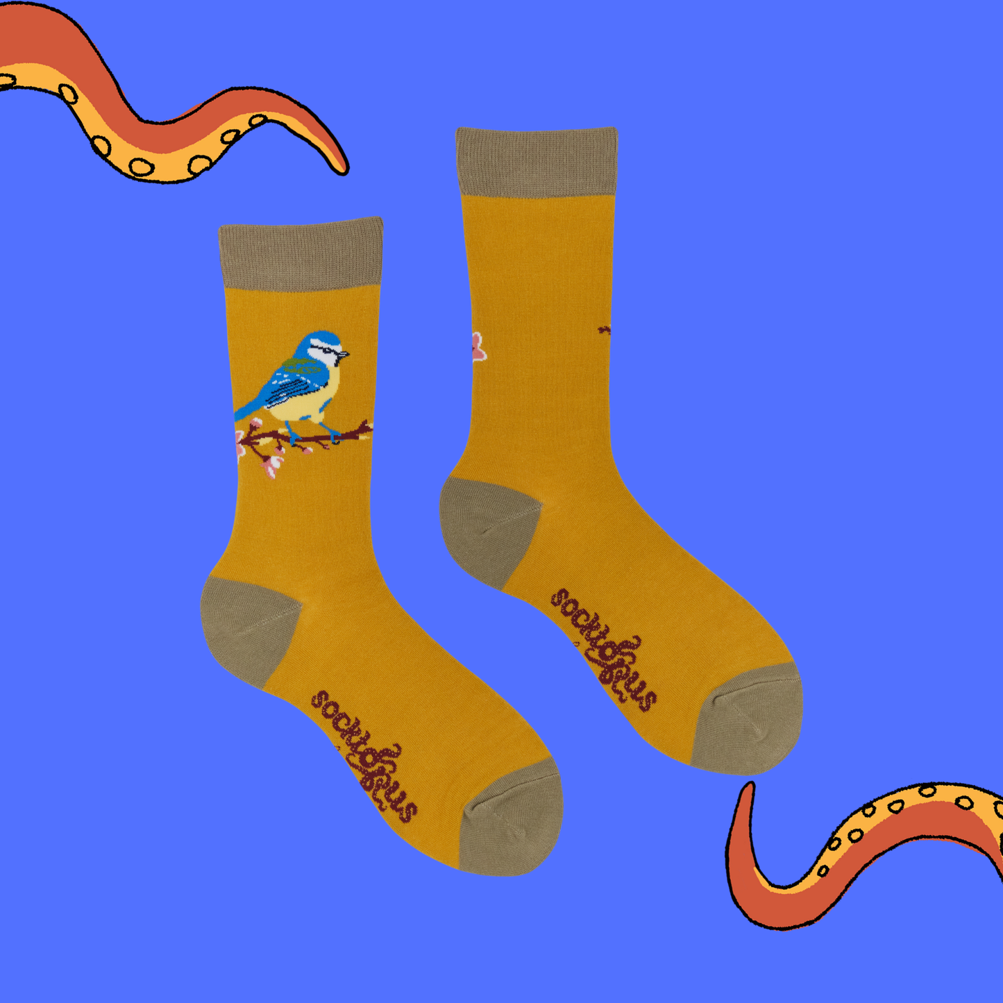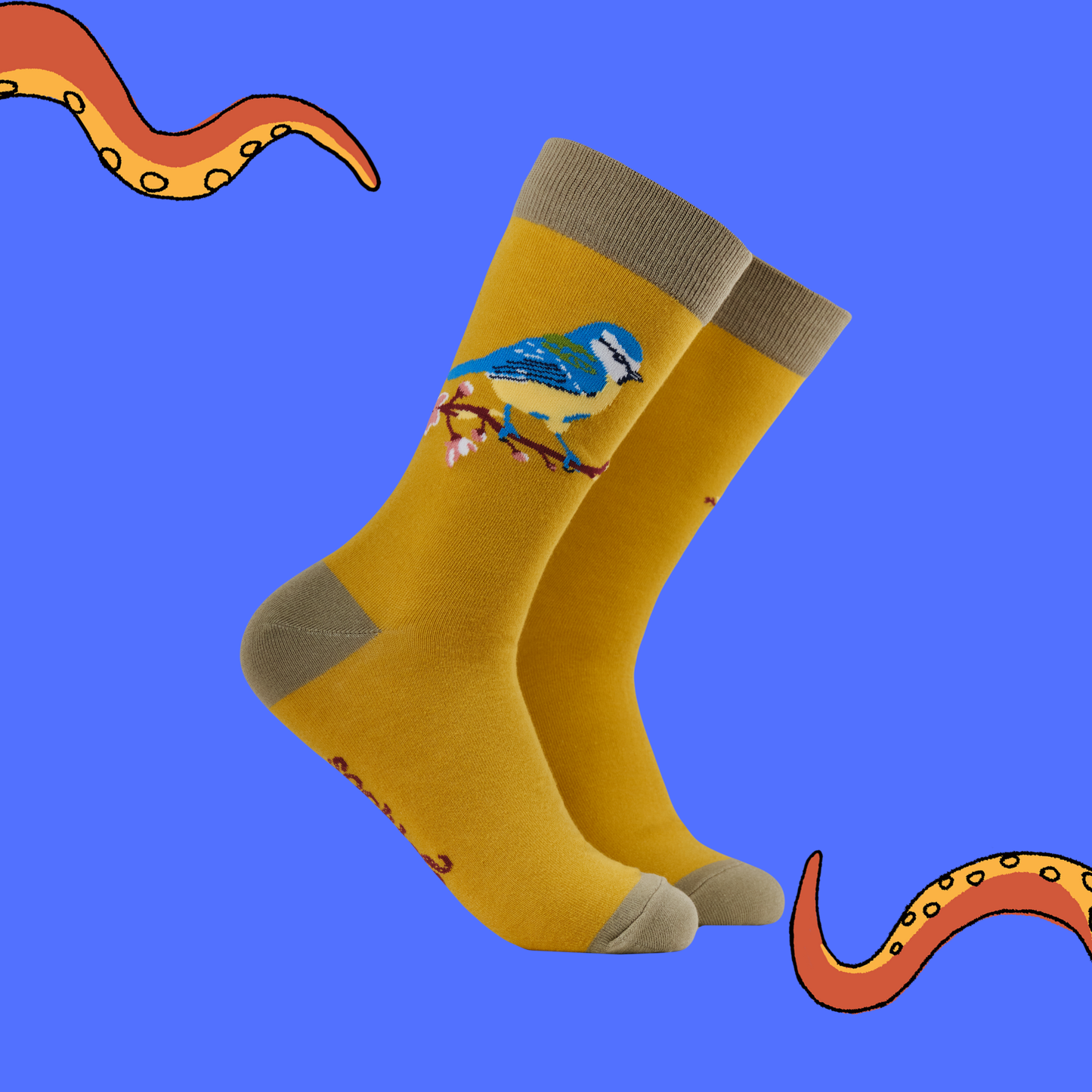 Featuring charming blue tit illustrations, these socks bring a burst of colour and cheer to your feet.