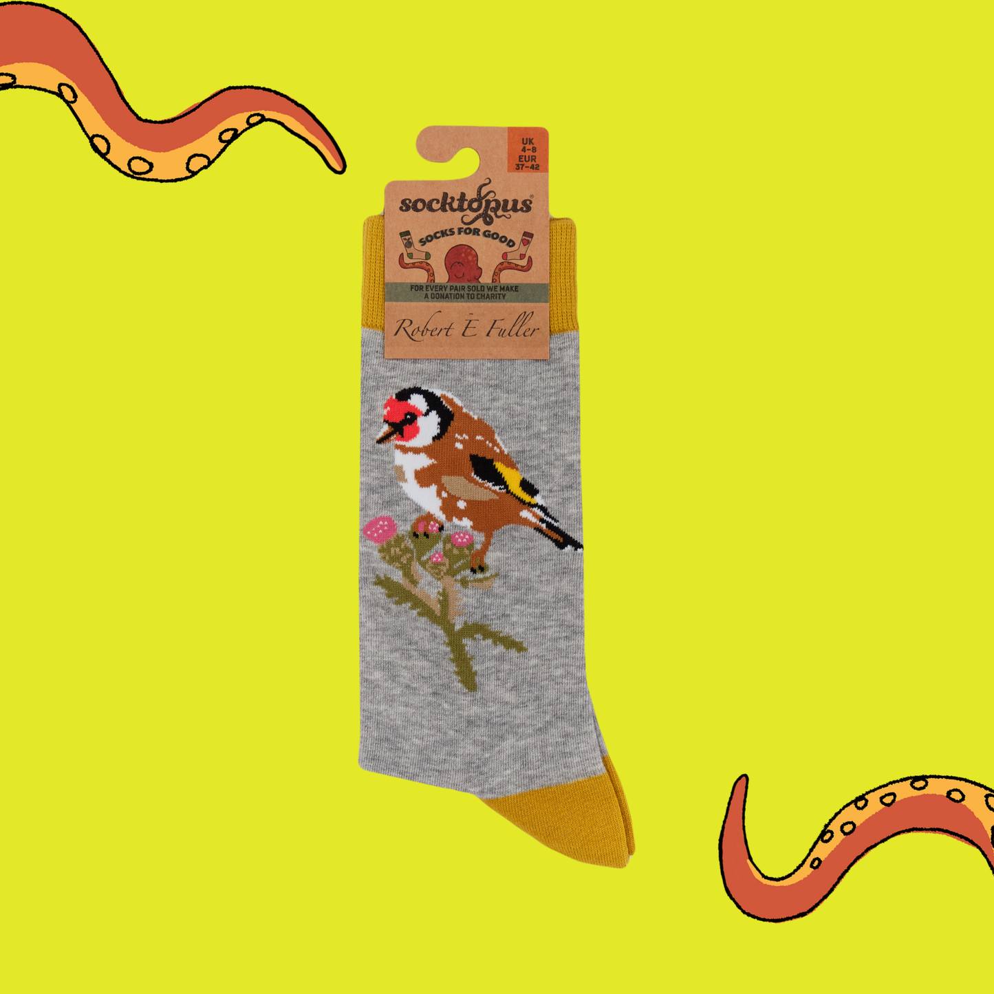Brighten your day with the Goldfinch Socks, a delightful collaboration with Robert E Fuller.