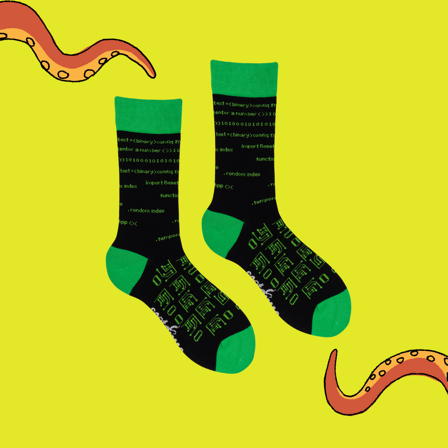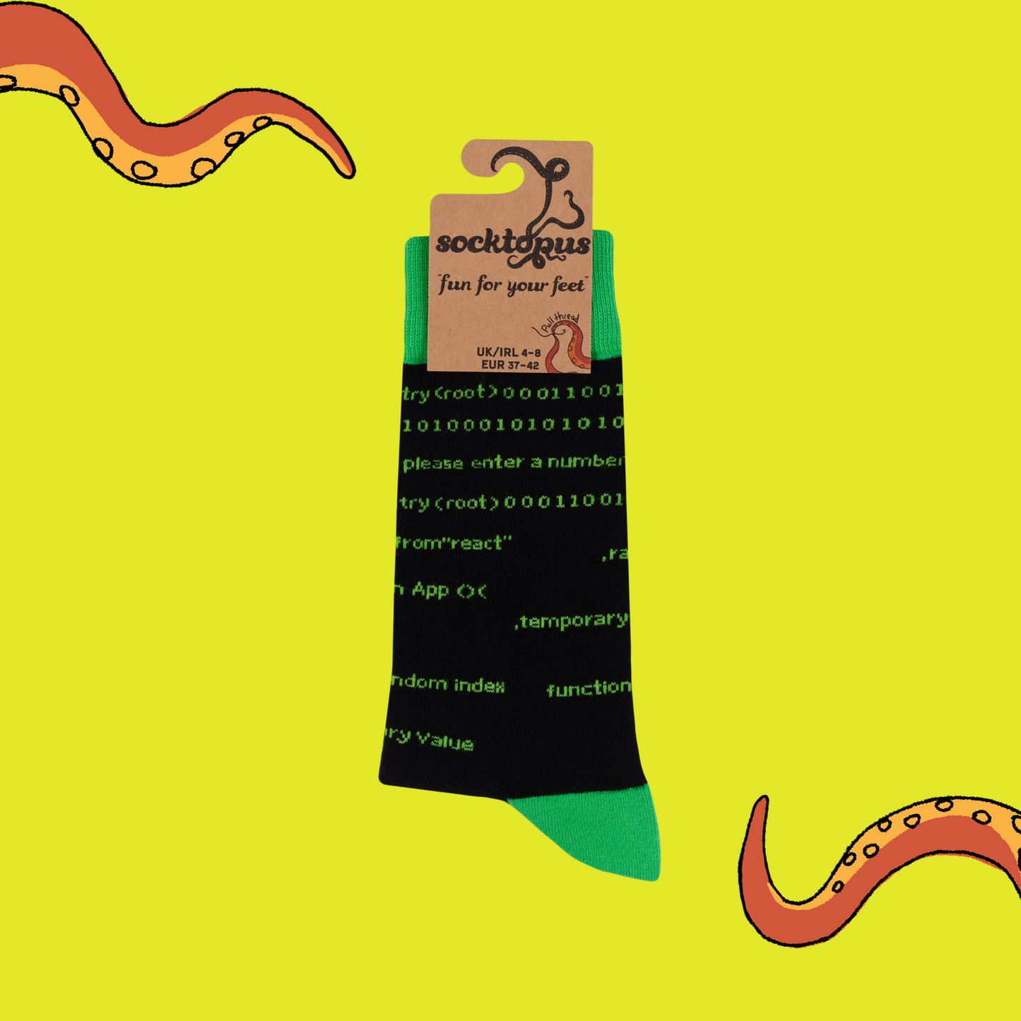 These quirky, fun socks combine the worlds of fashion and coding for a unique look and comfortable fit.